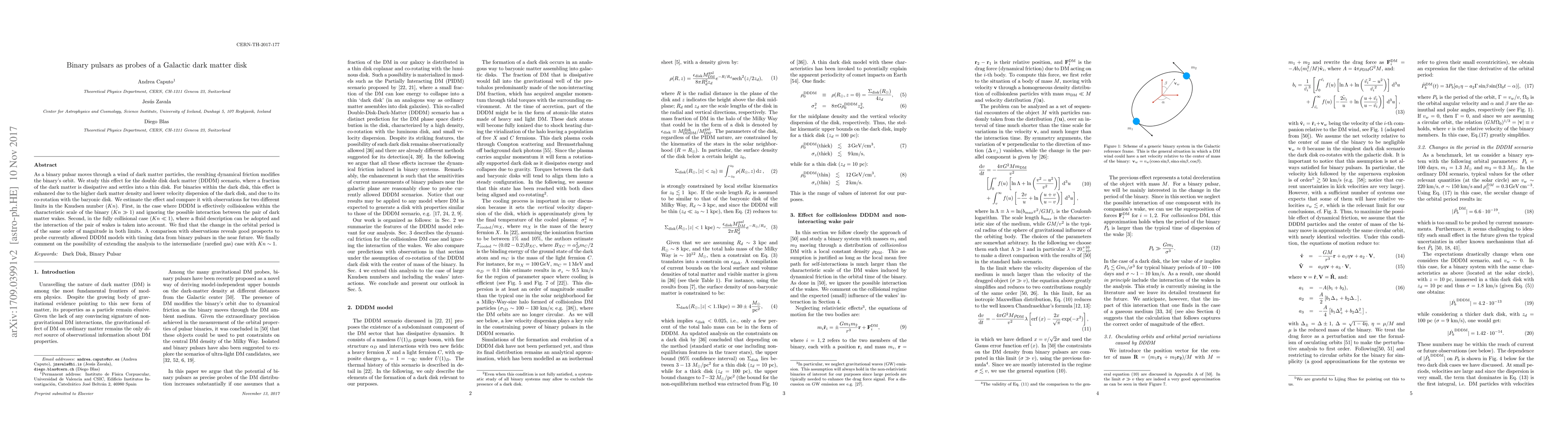 This paper investigates how binary pulsars can serve as probes for a Galactic dark matter disk, analyzing the dynamical friction effect caused by dark matter particles on the pulsars' orbits. It compares the effects under two scenarios: collisionless and fully collisional dark matter interactions, finding similar magnitudes of orbital period changes in both cases, suggesting potential for near-future observational tests.