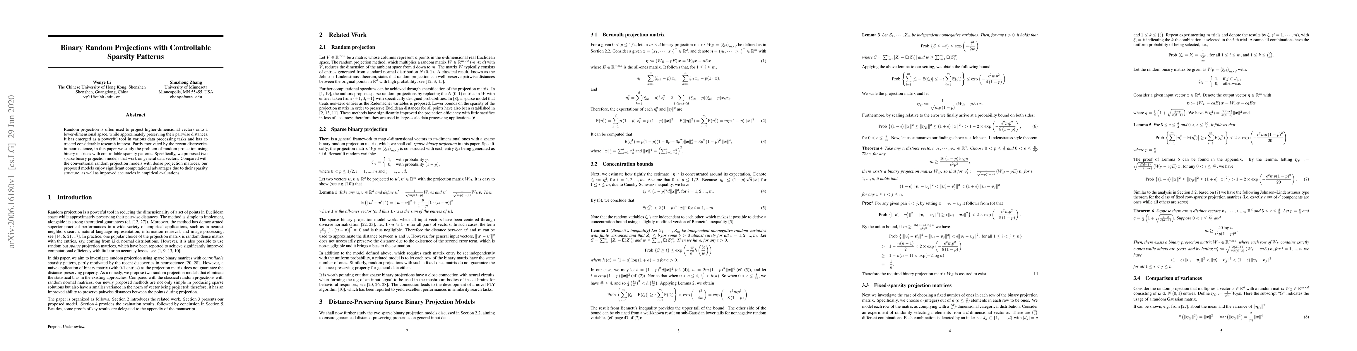 Researchers proposed two binary projection models with controllable sparsity patterns to improve accuracy and computational efficiency in data processing tasks.