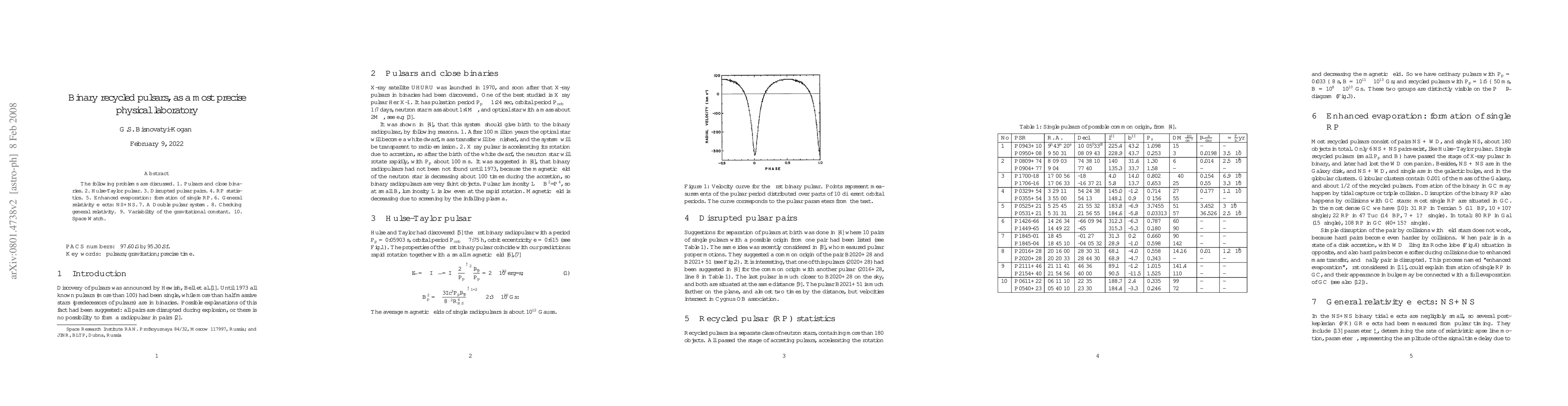 The following problems are discussed. 1. Pulsars and close binaries. 2. Hulse-Taylor pulsar. 3. Disrupted pulsar pairs. 4. RP statistics. 5. Enhanced evaporation: formation of single RP. 6. General relativity effects: NS+NS. 7. A Double pulsar system. 8. Checking general relativity. 9. Variability of the gravitational constant. 10. Space Watch.