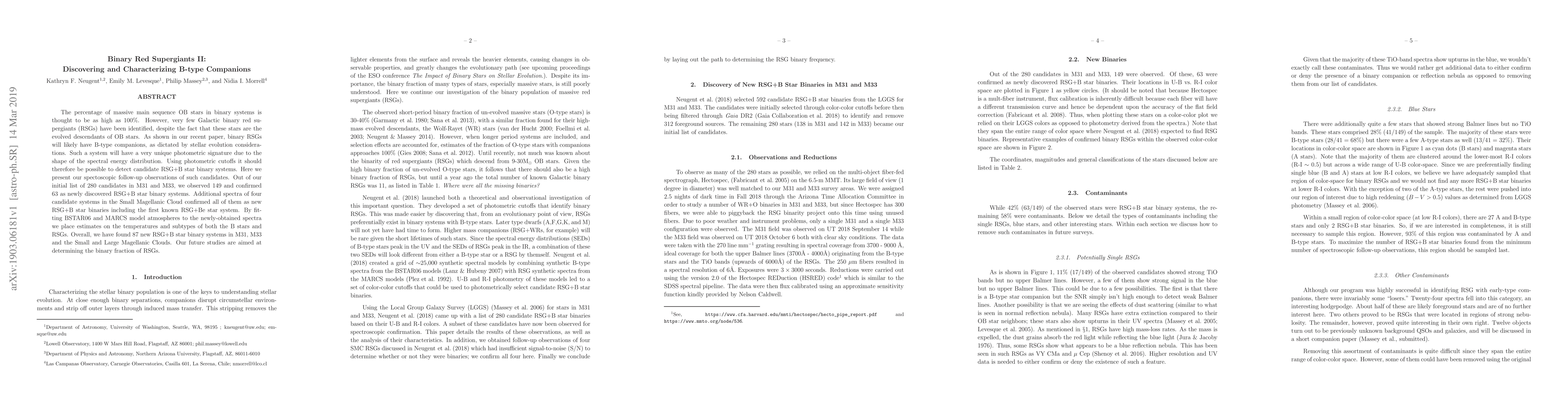 The percentage of massive main sequence OB stars in binary systems is thought to be as high as 100%. However, very few Galactic binary red supergiants (RSGs) have been identified, despite the fact that these stars are the evolved descendants of OB stars. As shown in our recent paper, binary RSGs will likely have B-type companions, as dictated by stellar evolution considerations. Such a system will have a very unique photometric signature due to the shape of the spectral energy distribution. Using photometric cutoffs it should therefore be possible to detect candidate RSG+B star binary systems. Here we present our spectoscopic follow-up observations of such candidates. Out of our initial list of 280 candidates in M31 and M33, we observed 149 and confirmed 63 as newly discovered RSG+B star binary systems. Additional spectra of four candidate systems in the Small Magellanic Cloud confirmed all of them as new RSG+B star binaries including the first known RSG+Be star system. By fitting BSTAR06 and MARCS model atmospheres to the newly-obtained spectra we place estimates on the temperatures and subtypes of both the B stars and RSGs. Overall, we have found 87 new RSG+B star binary systems in M31, M33 and the Small and Large Magellanic Clouds. Our future studies are aimed at determining the binary fraction of RSGs.