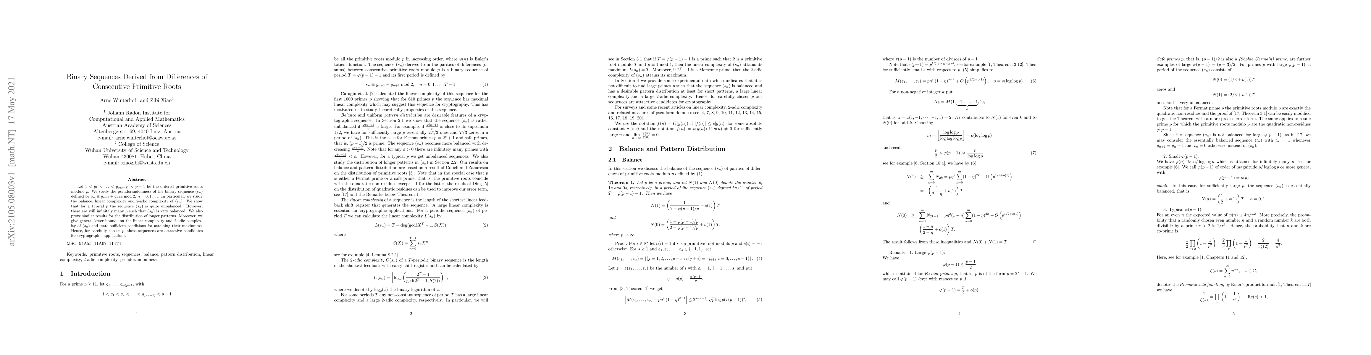 Researchers studied binary sequences generated from differences of consecutive primitive roots modulo p, finding that while some sequences are unbalanced for typical p values, others can be very balanced and are attractive candidates for cryptographic applications.