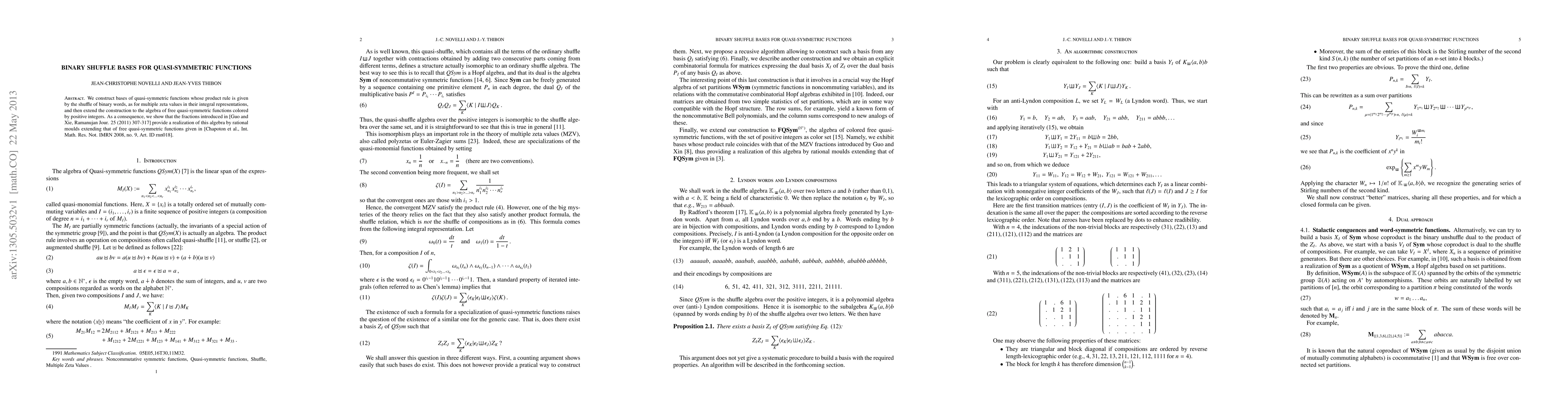 Researchers developed a new basis for quasi-symmetric functions with a product rule given by binary word shuffles, extending to colored free quasi-symmetric functions, providing a realization of the algebra via rational moulds.
