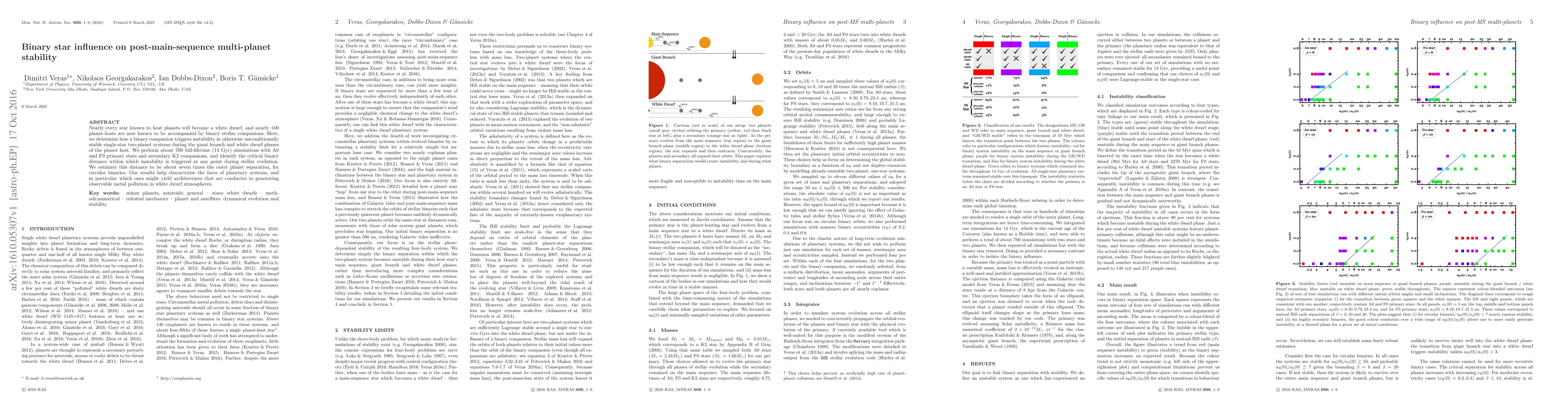 This paper investigates how binary star companions induce instability in multi-planet systems during the evolution of their primary stars, finding that binary distances within seven times the outer planet separation can trigger instability. The study uses 700 simulations to identify critical distances for instability during the giant branch and white dwarf phases.
