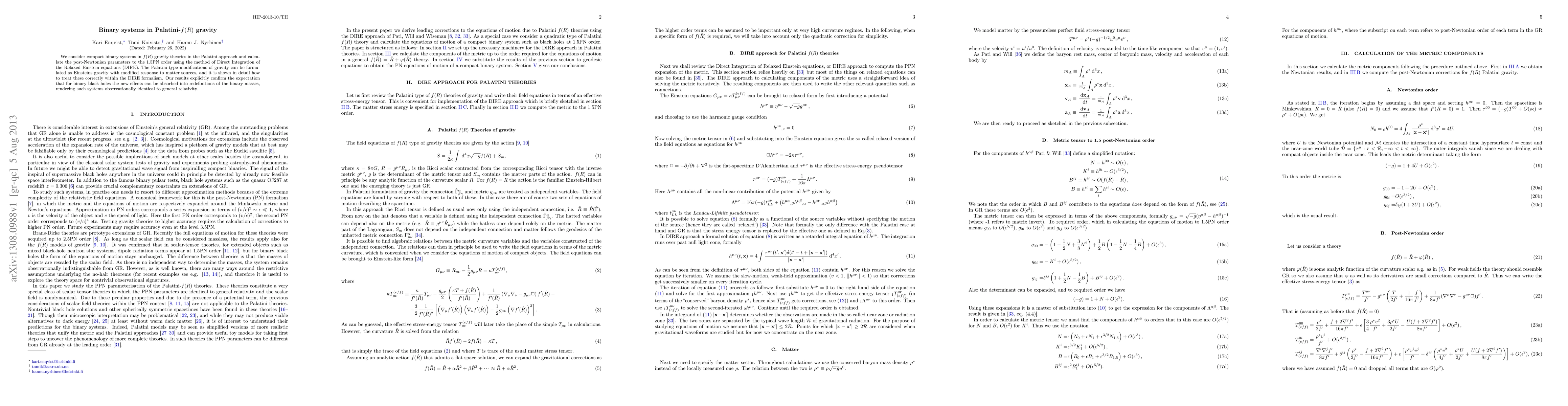 This paper investigates compact binary systems in Palatini-f(R) gravity using the Direct Integration of the Relaxed Einstein equations (DIRE) method, finding that modifications to gravity can be absorbed into redefined masses, making binary black holes observationally indistinguishable from those in general relativity up to 1.5PN order.