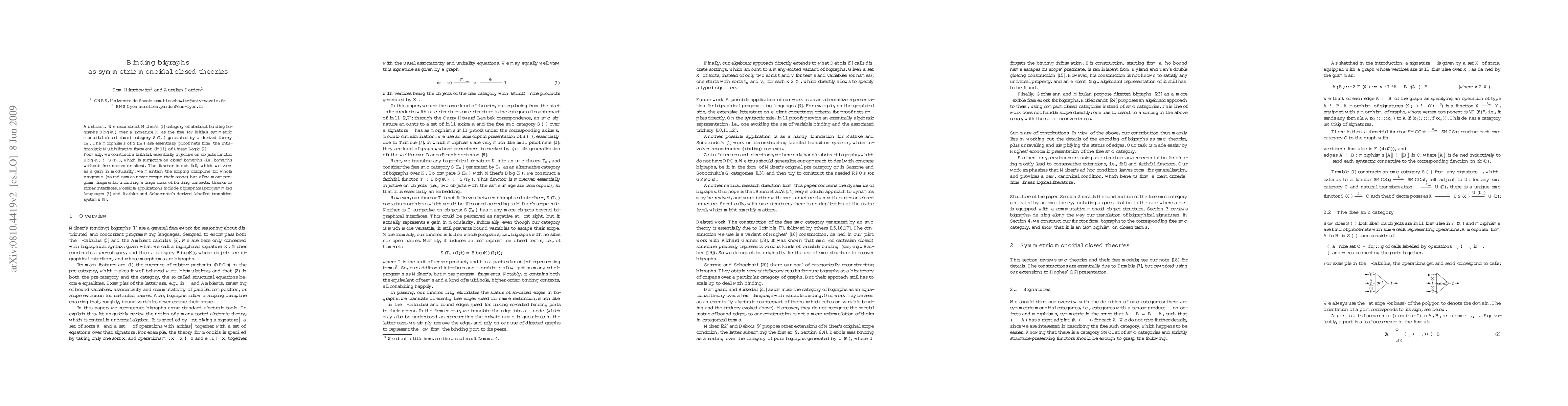 Milner's bigraphs are a general framework for reasoning about distributed and concurrent programming languages. Notably, it has been designed to encompass both the pi-calculus and the Ambient calculus. This paper is only concerned with bigraphical syntax: given what we here call a bigraphical signature K, Milner constructs a (pre-) category of bigraphs BBig(K), whose main features are (1) the presence of relative pushouts (RPOs), which makes them well-behaved w.r.t. bisimulations, and that (2) the so-called structural equations become equalities. Examples of the latter include, e.g., in pi and Ambient, renaming of bound variables, associativity and commutativity of parallel composition, or scope extrusion for restricted names. Also, bigraphs follow a scoping discipline ensuring that, roughly, bound variables never escape their scope. Here, we reconstruct bigraphs using a standard categorical tool: symmetric monoidal closed (SMC) theories. Our theory enforces the same scoping discipline as bigraphs, as a direct property of SMC structure. Furthermore, it elucidates the slightly mysterious status of so-called links in bigraphs. Finally, our category is also considerably larger than the category of bigraphs, notably encompassing in the same framework terms and a flexible form of higher-order contexts.