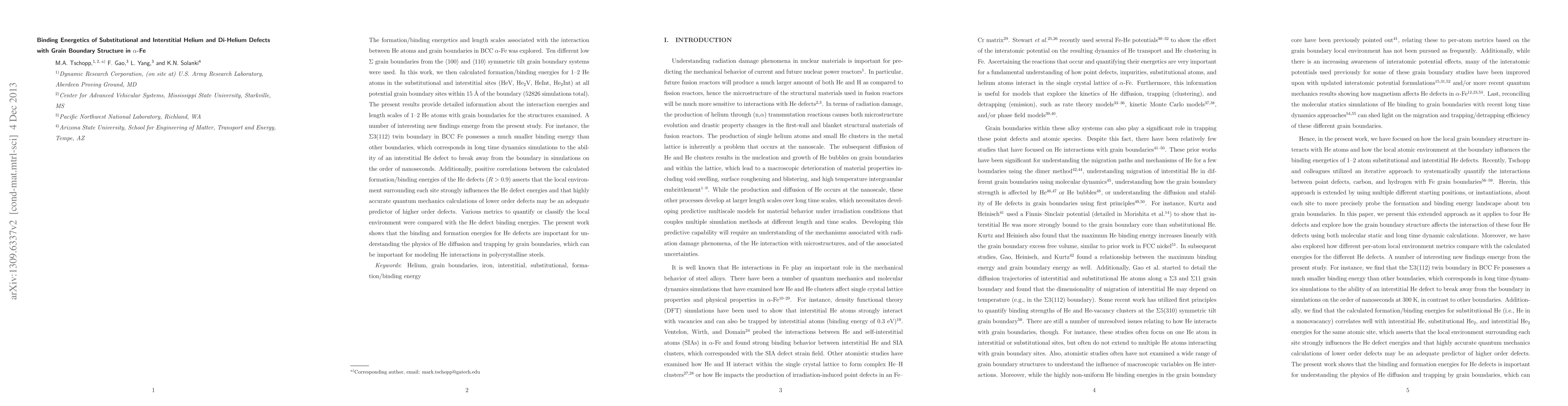This study investigates the binding energetics of He atoms and di-Helium defects interacting with various low Sigma grain boundaries in BCC alpha-Fe, revealing that the Sigma3(112) twin boundary has notably lower binding energy, facilitating He defect mobility. The research also finds a strong correlation between substitutional and interstitial He defect energies, suggesting that lower-order defect calculations can predict higher-order defect behaviors.
