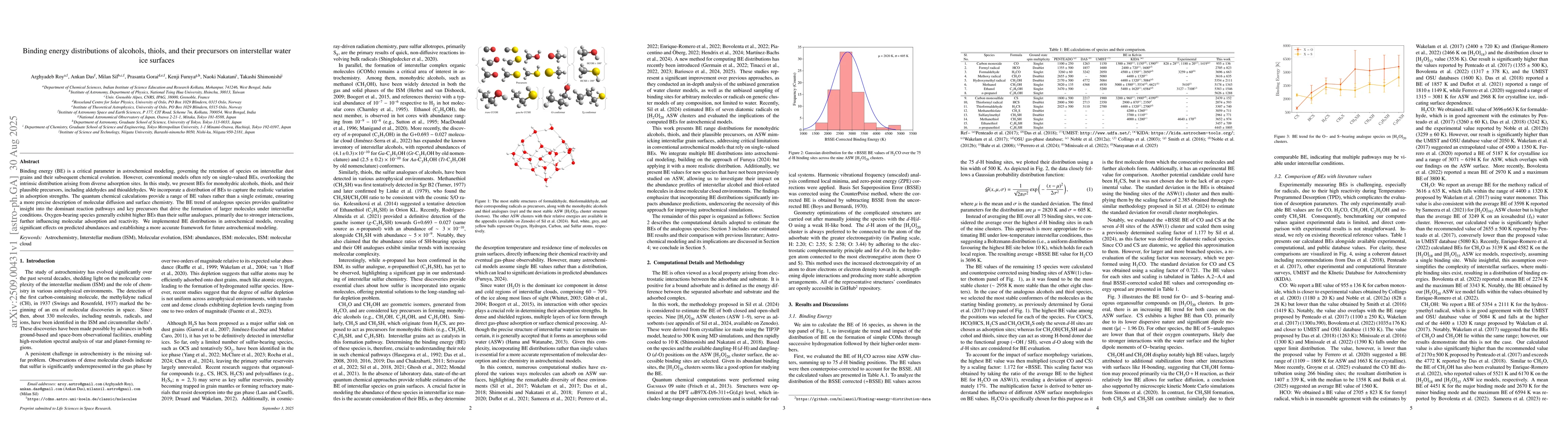 Binding energy (BE) is a critical parameter in astrochemical modeling, governing the retention of species on interstellar dust grains and their subsequent chemical evolution. However, conventional models often rely on single-valued BEs, overlooking the intrinsic distribution arising from diverse adsorption sites. In this study, we present BEs for monohydric alcohols, thiols, and their plausible precursors, including aldehydes and thioaldehydes. We incorporate a distribution of BEs to capture the realistic variation in adsorption strengths. The quantum chemical calculations provide a range of BE values rather than a single estimate, ensuring a more precise description of molecular diffusion and surface chemistry. The BE trend of analogous species provides qualitative insight into the dominant reaction pathways and key precursors that drive the formation of larger molecules under interstellar conditions. Oxygen-bearing species generally exhibit higher BEs than their sulfur analogues, primarily due to stronger interactions, further influencing molecular adsorption and reactivity. We implemented BE distributions in astrochemical models, revealing significant effects on predicted abundances and establishing a more accurate framework for future astrochemical modeling.