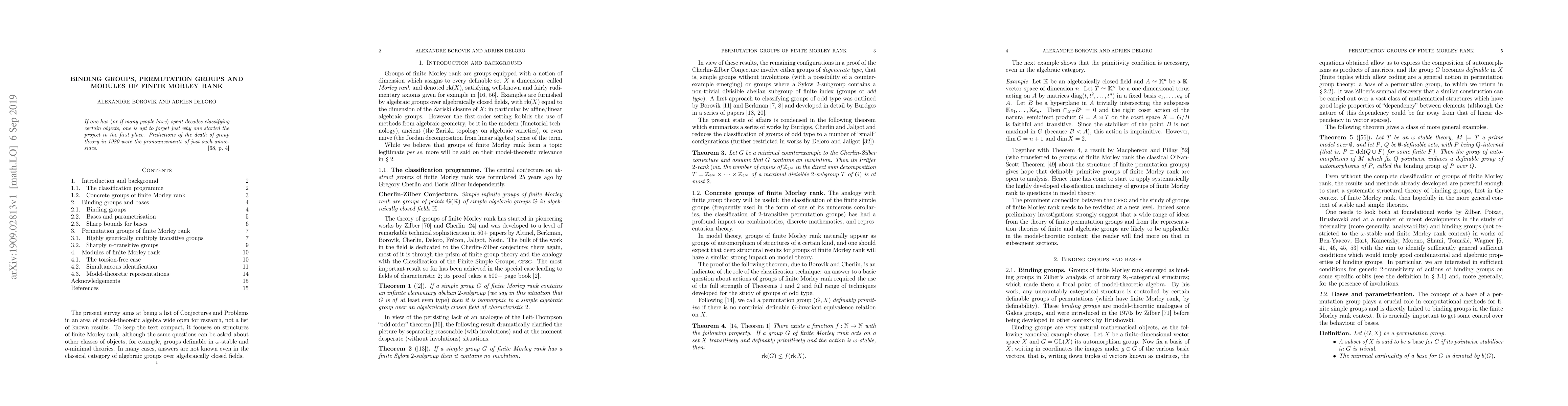 The present survey aims at being a list of Conjectures and Problems in an area of model-theoretic algebra wide open for research, not a list of known results. To keep the text compact, it focuses on structures of finite Morley rank, although the same questions can be asked about other classes of objects, for example, groups definable in $\omega$-stable and $o$-minimal theories. In many cases, answers are not known even in the classical category of algebraic groups over algebraically closed fields.