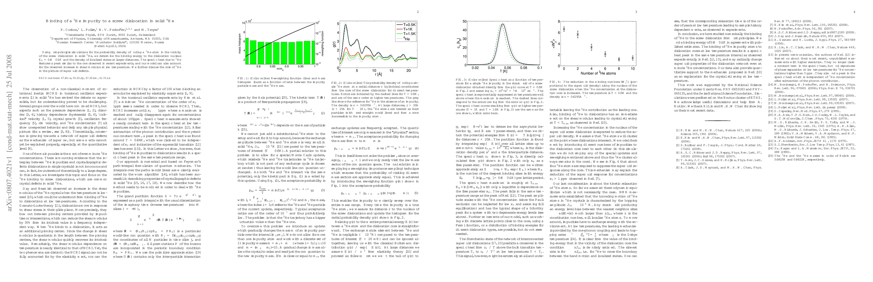Researchers used first-principle simulations to find a 3He atom bound to a screw dislocation in solid 4He, determining a binding energy of 0.8 K and accounting for observed effects on superfluidity and material properties.
