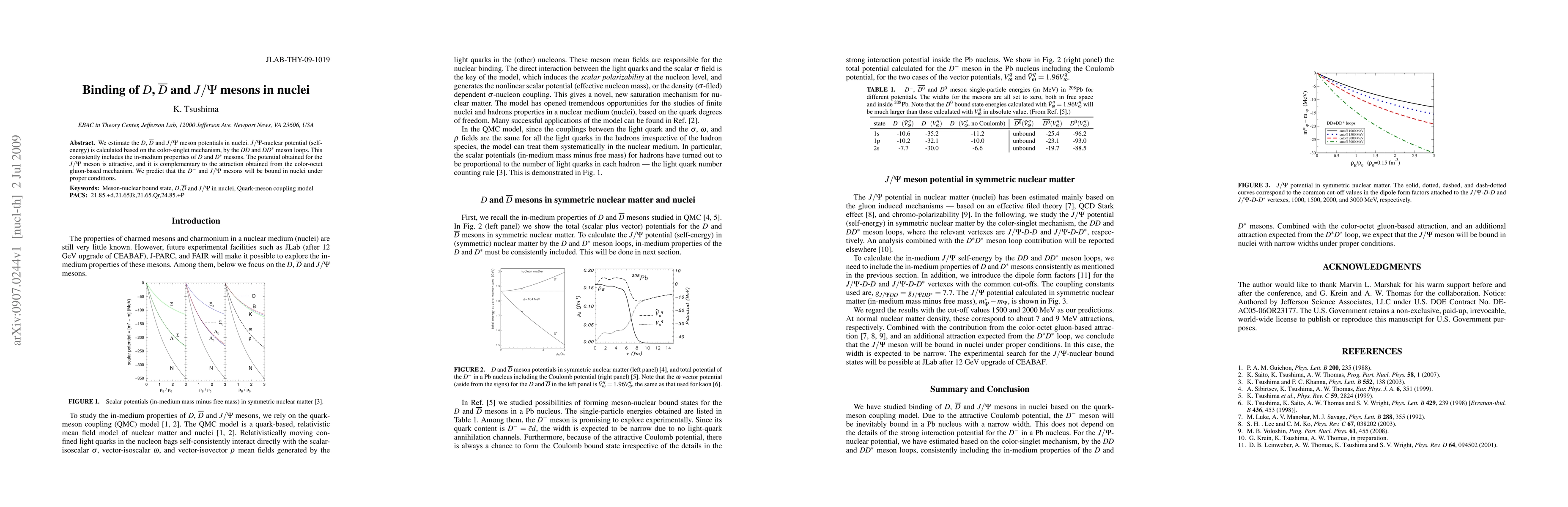 This paper estimates the potentials for $D$, $\overline{D}$, and $J/\Psi$ mesons in nuclei, finding an attractive $J/\Psi$-nuclear potential based on color-singlet mechanisms. It predicts that $D^-$ and $J/\Psi$ mesons can be bound in nuclei under suitable conditions.
