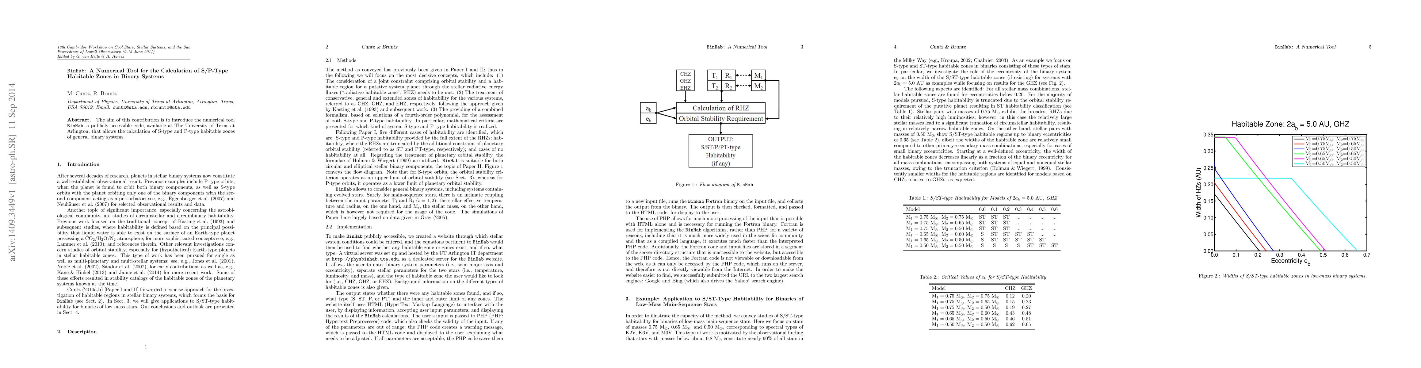 Summary: BinHab is a publicly available numerical tool designed to calculate the S-type and P-type habitable zones in binary star systems, providing a valuable resource for astrobiology and exoplanet research. It is accessible through The University of Texas at Arlington.