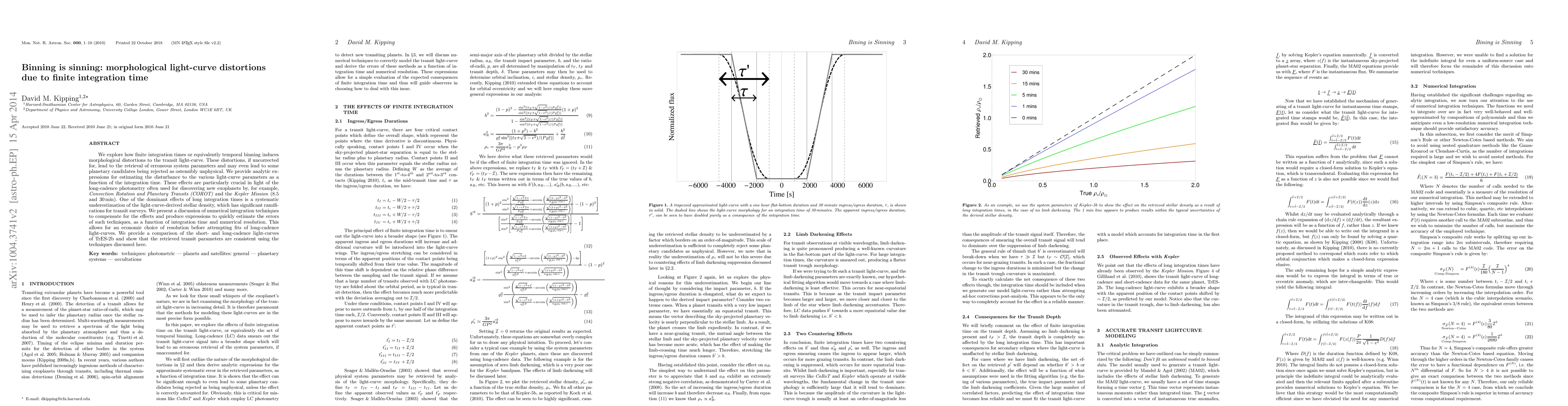 We explore how finite integration times or equivalently temporal binning induces morphological distortions to the transit light-curve. These distortions, if uncorrected for, lead to the retrieval of erroneous system parameters and may even lead to some planetary candidates being rejected as ostensibly unphysical. We provide analytic expressions for estimating the disturbance to the various light-curve parameters as a function of the integration time. These effects are particularly crucial in light of the long-cadence photometry often used for discovering new exoplanets by, for example, Convection Rotation and Planetary Transits (COROT) and the Kepler Mission (8.5 and 30 min). One of the dominant effects of long integration times is a systematic underestimation of the light-curve-derived stellar density, which has significant ramifications for transit surveys. We present a discussion of numerical integration techniques to compensate for the effects and produce expressions to quickly estimate the errors of such techniques, as a function of integration time and numerical resolution. This allows for an economic choice of resolution before attempting fits of long-cadence light-curves. We provide a comparison of the short- and long-cadence light-curves of TrES-2b and show that the retrieved transit parameters are consistent using the techniques discussed here.
