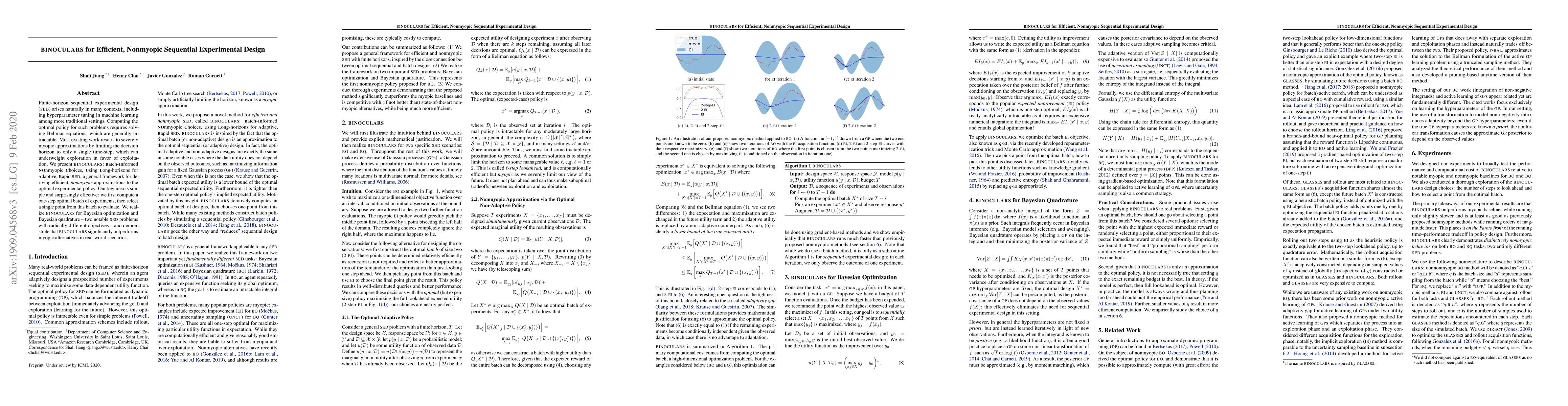 The paper introduces BINOCULARS, a framework for efficient, nonmyopic sequential experimental design that addresses the limitations of myopic approaches by incorporating long-horizon approximations. BINOCULARS outperforms myopic alternatives in Bayesian optimization and Bayesian quadrature tasks.
