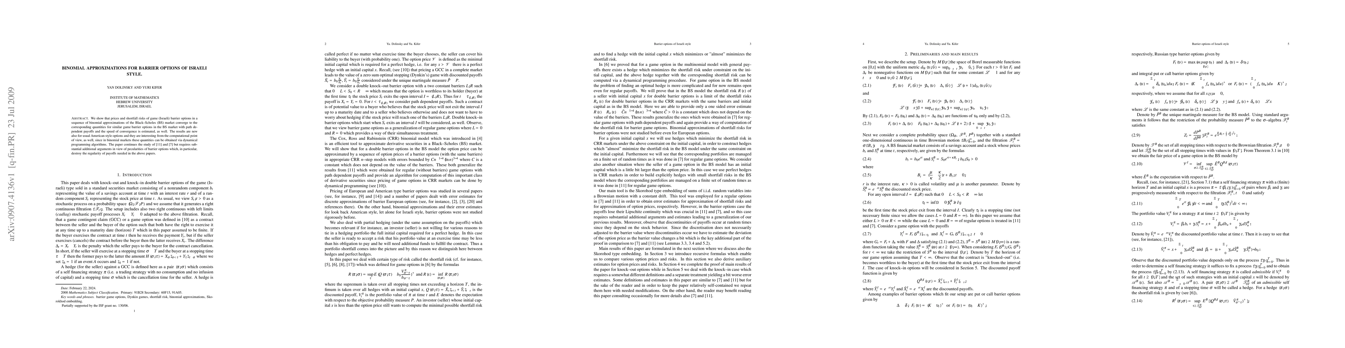 This paper demonstrates that binomial approximations accurately converge to the prices and risks of Israeli barrier options in the Black-Scholes market, with a detailed estimation of the convergence speed. The findings extend to American style options and offer computational benefits through dynamic programming algorithms.