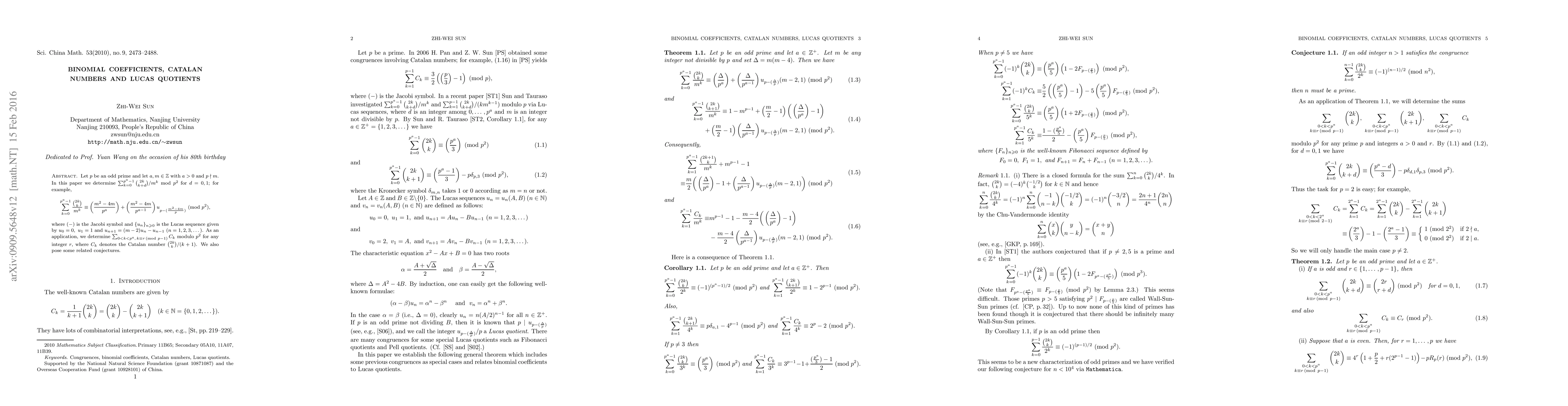 $\sum_{k=0}^{p^a-1}\binom{2k}{k+d}/m^k$ mod $p^2$ for $d=0,1$; for example,