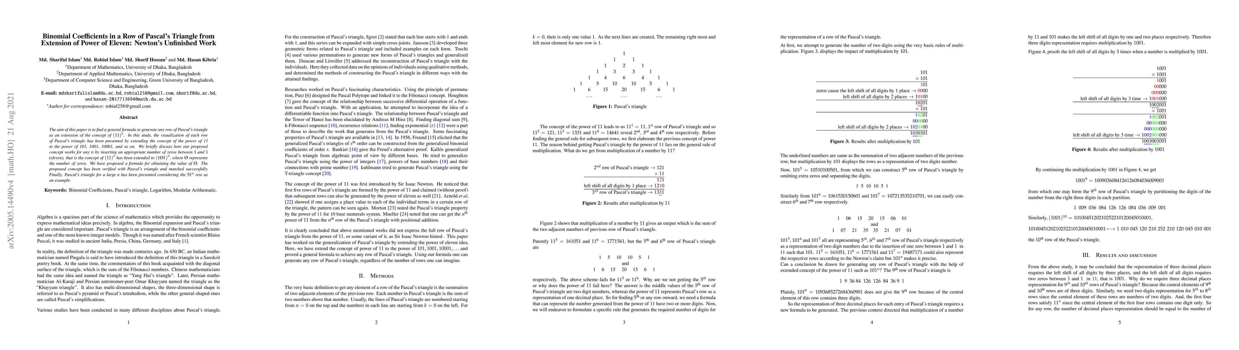The aim of this paper is to find a general formula to generate any row of Pascal's triangle as an extension of the concept of $\left(11\right)^{n}$. In this study, the visualization of each row of Pascal's triangle has been presented by extending the concept of the power of 11 to the power of 101, 1001, 10001, and so on. We briefly discuss how our proposed concept works for any $n$ by inserting an appropriate number of zeros between $1$ and $1$ (eleven), that is the concept of $\left(11\right)^{n}$ has been extended to $\left(1\Theta1\right)^{n}$, where $\Theta$ represents the number of zeros. We have proposed a formula for obtaining the value of $\Theta$. The proposed concept has been verified with Pascal's triangle and matched successfully. Finally, Pascal's triangle for a large n has been presented considering the $51^{\text{st}}$ row as an example.