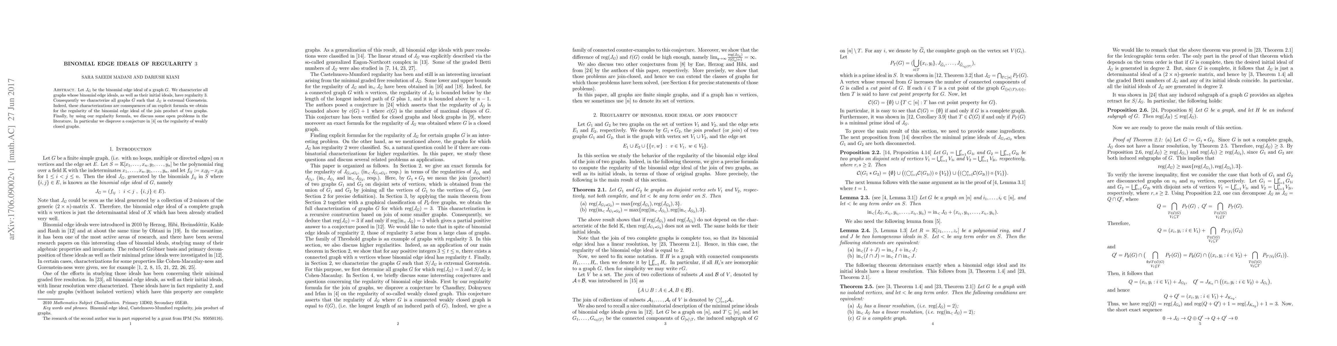 This paper characterizes graphs whose binomial edge ideals and their initial ideals have regularity 3, leading to the identification of extremal Gorenstein binomial edge ideals. It also disproves a conjecture regarding the regularity of weakly closed graphs, using a newly derived formula for the regularity of binomial edge ideals in join products of graphs.