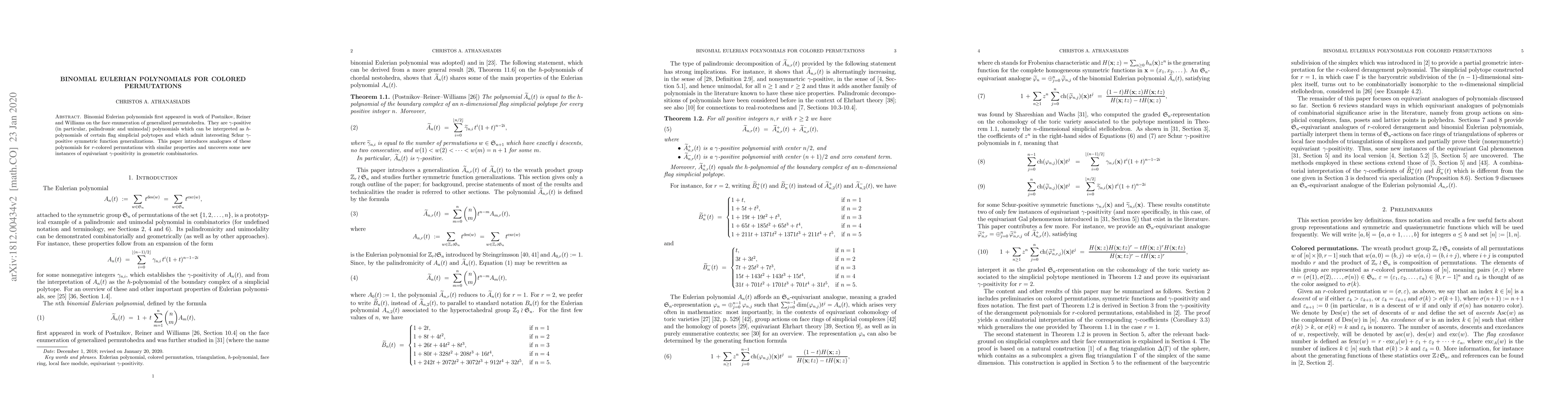 The paper introduces analogues of Binomial Eulerian polynomials for r-colored permutations, demonstrating their γ-positivity and unimodality, similar to their uncolored counterparts.