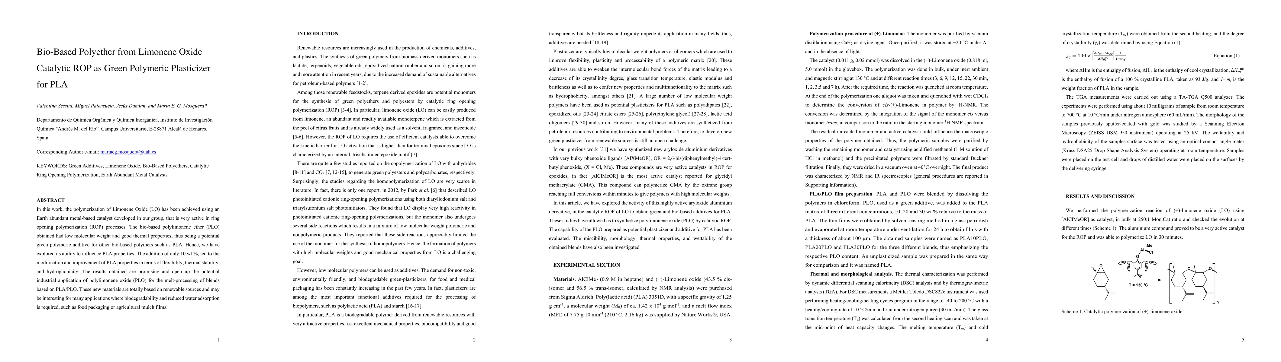The research presents a method to create a bio-based plasticizer from limonene oxide using a cost-effective catalyst. This plasticizer, polylimonene ether (PLO), when added to PLA in small amounts, enhances PLA's flexibility, thermal stability, and hydrophobicity, suggesting potential for industrial use in biodegradable materials like food packaging and agricultural films.