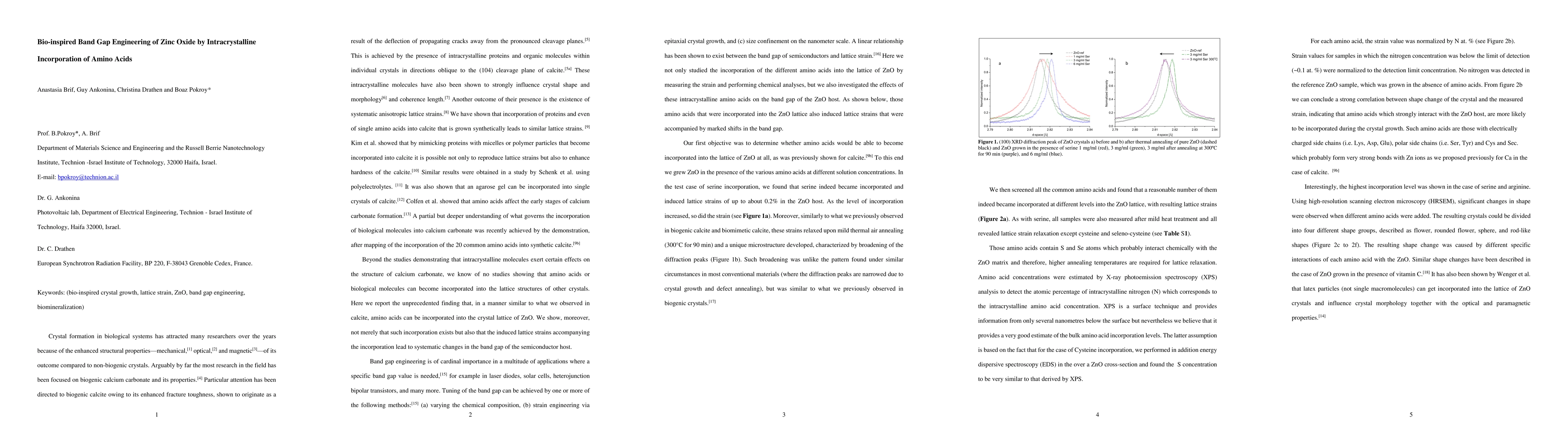 During a bioInspired crystallization process, incorporation of amino acids into the crystal structure of ZnO induces lattice strain that leads to linear bandgap shifts.