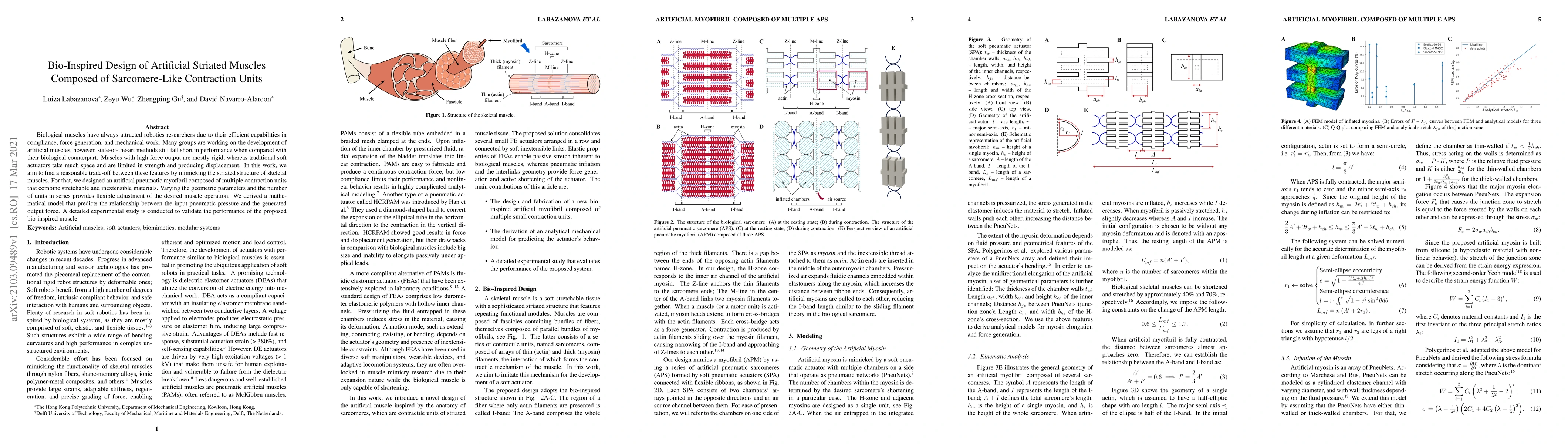 This paper presents a bio-inspired design for artificial striated muscles using pneumatic myofibrils composed of sarcomere-like contraction units, aiming to achieve a balance between strength and flexibility. The study validates the performance of the proposed design through a detailed mathematical model and experimental testing.