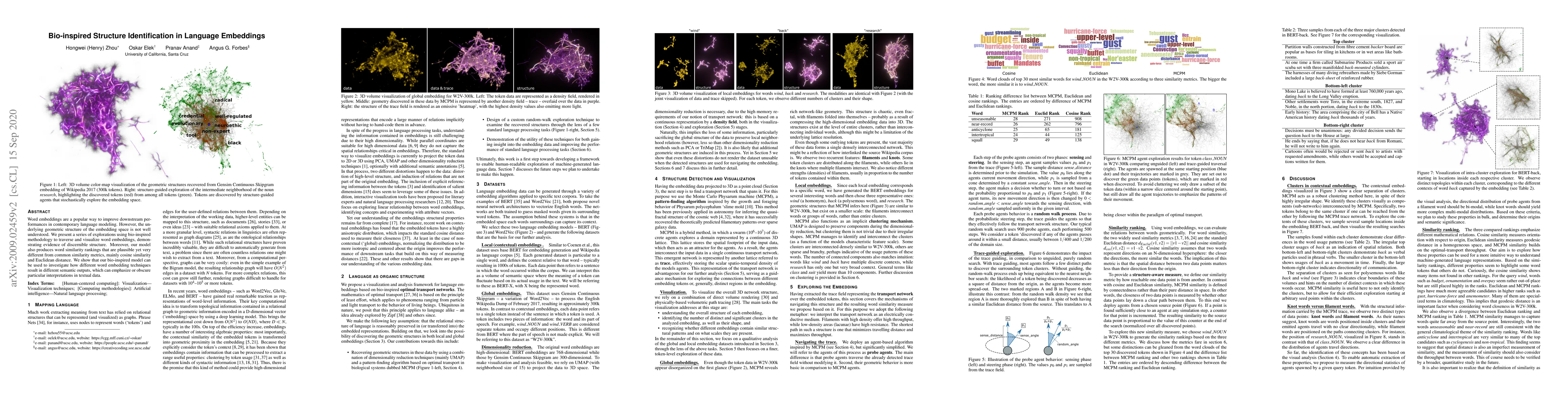 This paper explores the geometric structure of word embeddings using bio-inspired methods, revealing discernible patterns and producing unique word similarity rankings. It demonstrates how different embedding techniques yield varied semantic interpretations in textual data.
