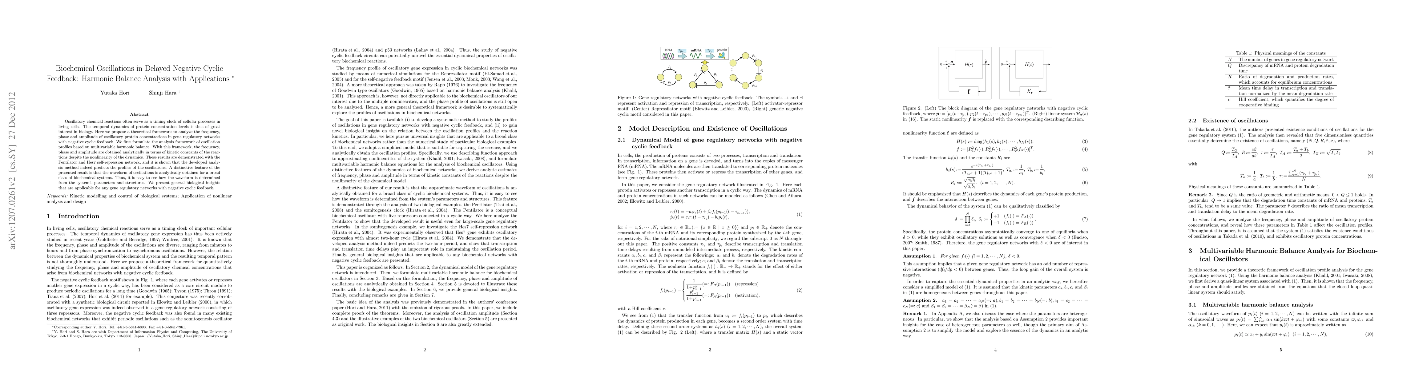 This paper proposes a theoretical framework using harmonic balance analysis to analytically determine the frequency, phase, and amplitude of oscillatory protein concentrations in gene regulatory networks with negative cyclic feedback. The method is demonstrated to accurately predict oscillation profiles in the Pentilator and Hes7 self-repression networks, providing general biological insights applicable to various gene regulatory systems.