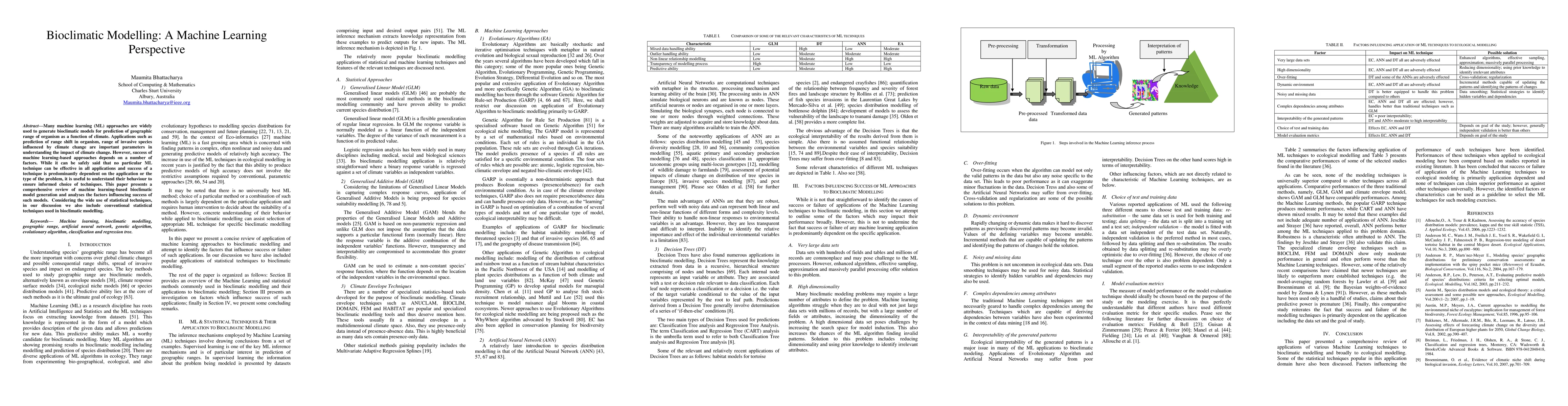 This paper reviews machine learning approaches for generating bioclimatic models to predict organism geographic ranges influenced by climate. It highlights the importance of understanding various factors affecting the success of these models, emphasizing that no single technique is universally effective, and discusses both machine learning and traditional statistical methods.