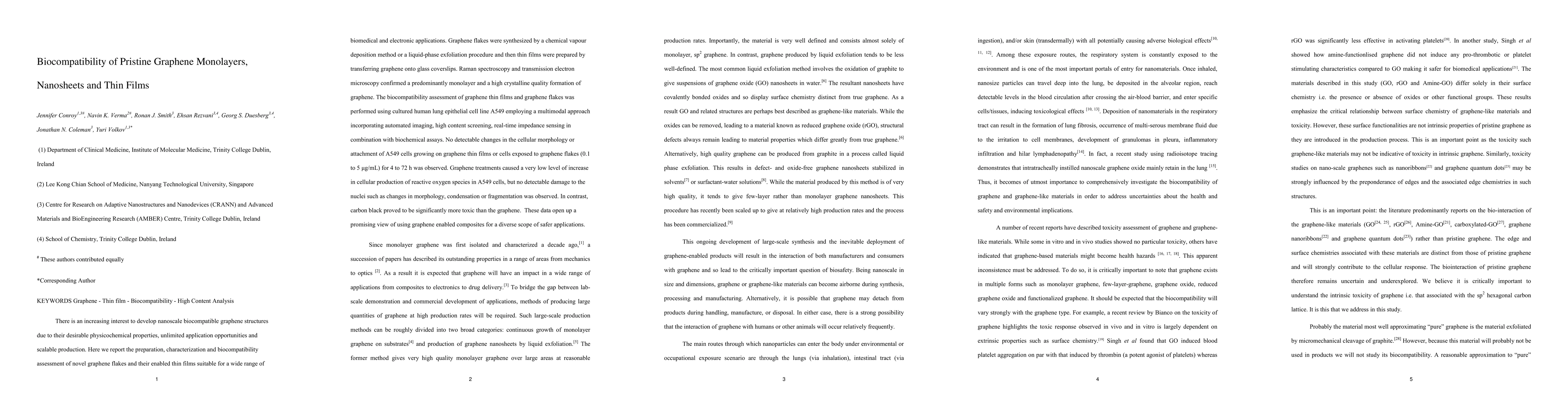 Graphene flakes and thin films were found to be non-toxic to human lung epithelial cells, with minimal effect on cellular morphology or production of reactive oxygen species. This opens up a promising view for using graphene in diverse applications with improved safety profiles.