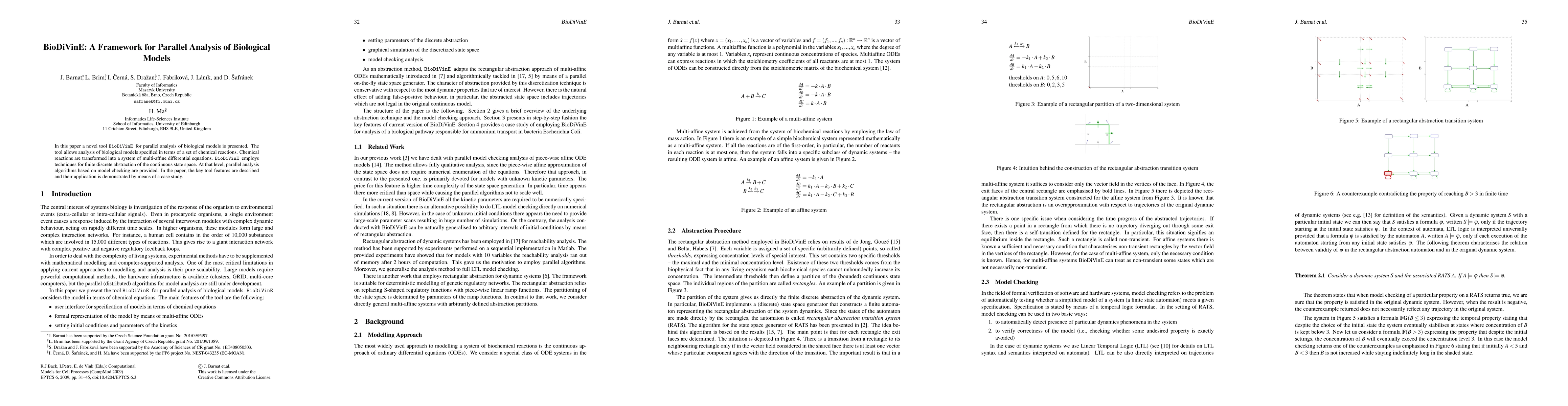 BioDiVinE is a novel framework for parallel analysis of biological models through chemical reaction systems, transforming them into multi-affine differential equations and employing parallel model checking techniques for analysis. The framework's effectiveness is demonstrated via a case study.