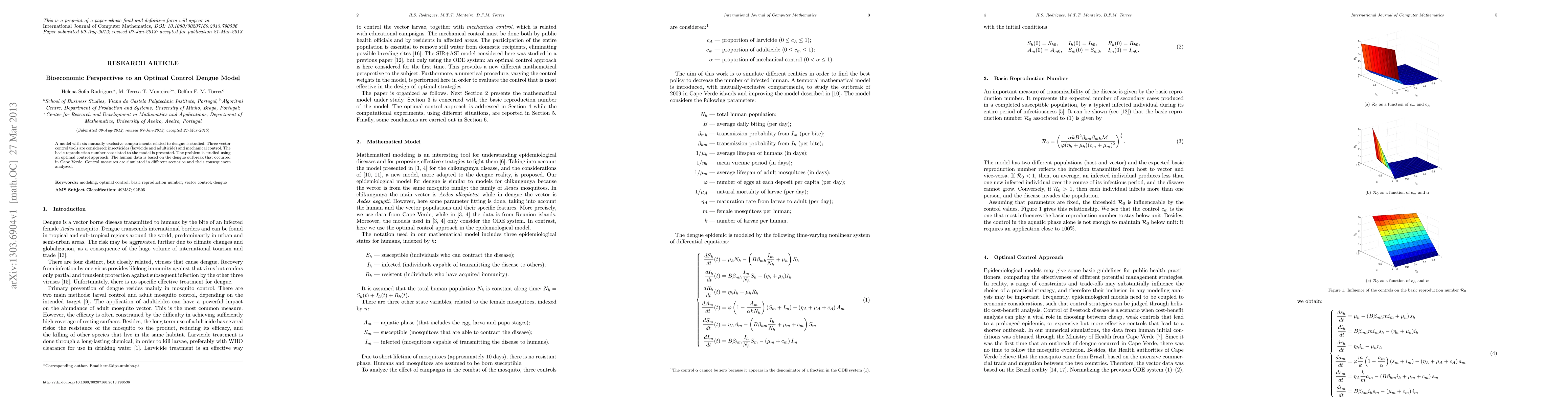 A model with six mutually-exclusive compartments related to dengue is studied. Three vector control tools are considered: insecticides (larvicide and adulticide) and mechanical control. The basic reproduction number associated to the model is presented. The problem is studied using an optimal control approach. The human data is based on the dengue outbreak that occurred in Cape Verde. Control measures are simulated in different scenarios and their consequences analyzed.