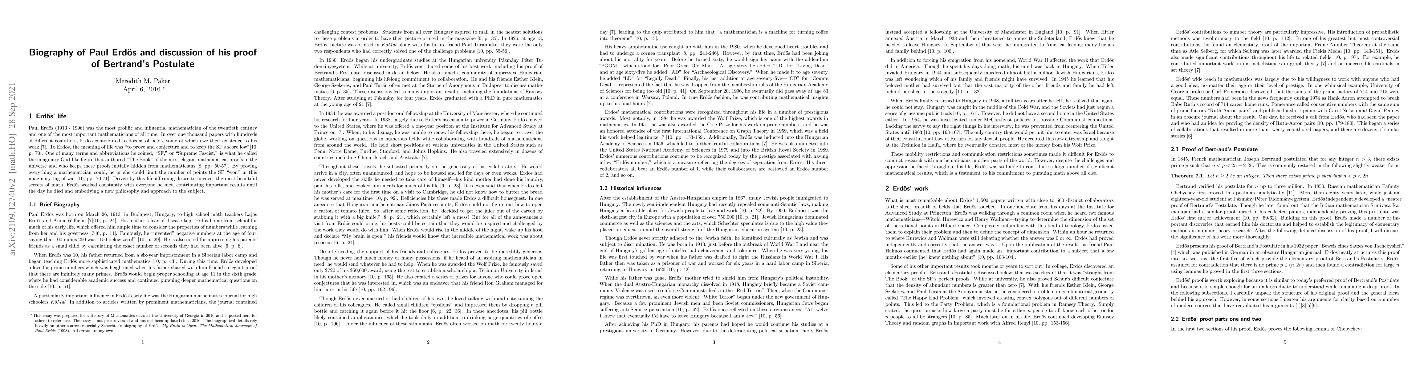 This paper provides a brief biography of mathematician Paul Erdős, highlighting his unique approach to mathematics. It also explains Erdős' simple, elementary proof for Bertrand's Postulate, demonstrating his profound impact on number theory.