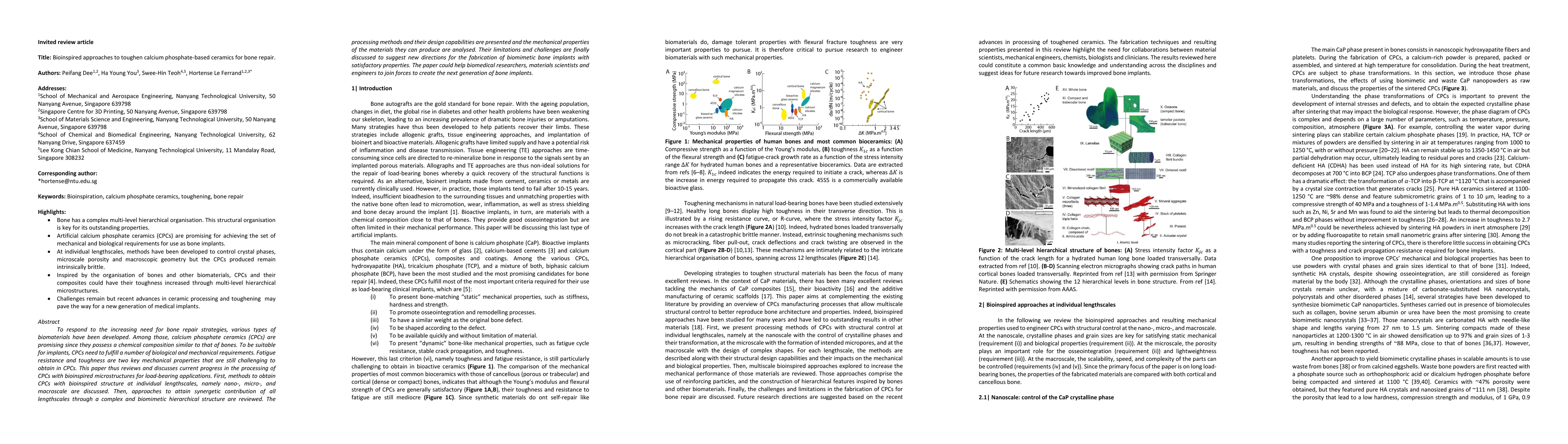 This paper reviews advances in creating tough, calcium phosphate ceramics (CPCs) for bone repair by mimicking natural bone structures at nano-, micro-, and macroscales. It discusses the integration of these structures to achieve enhanced mechanical properties, highlighting current limitations and suggesting future research directions to develop superior biomimetic bone implants.