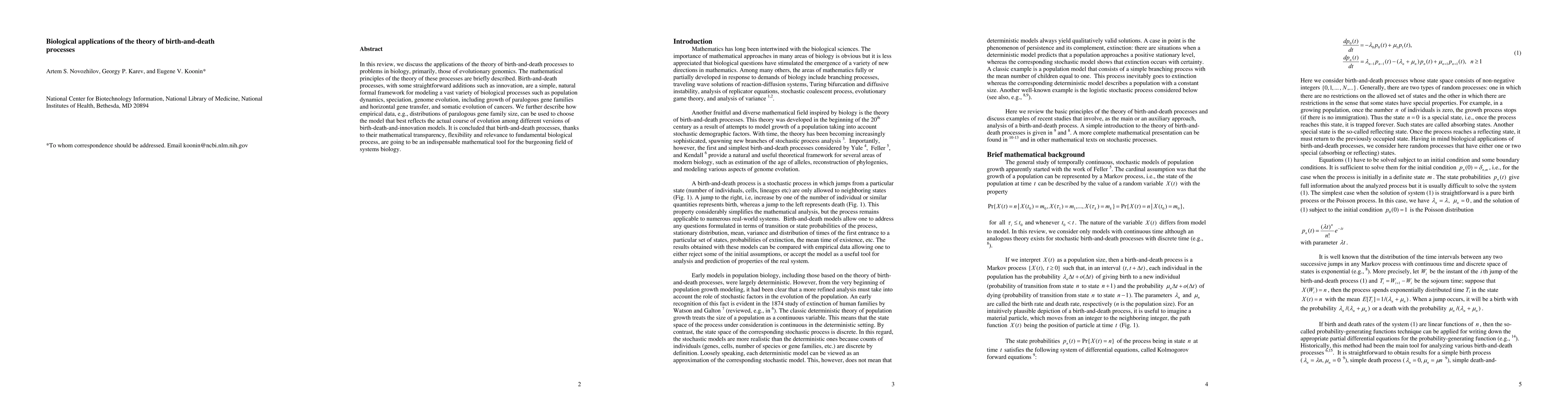 This paper reviews the applications of birth-and-death processes in modeling various biological phenomena, including population dynamics and genome evolution, highlighting their utility in systems biology. It emphasizes the mathematical flexibility and empirical relevance of these models in evolutionary genomics.
