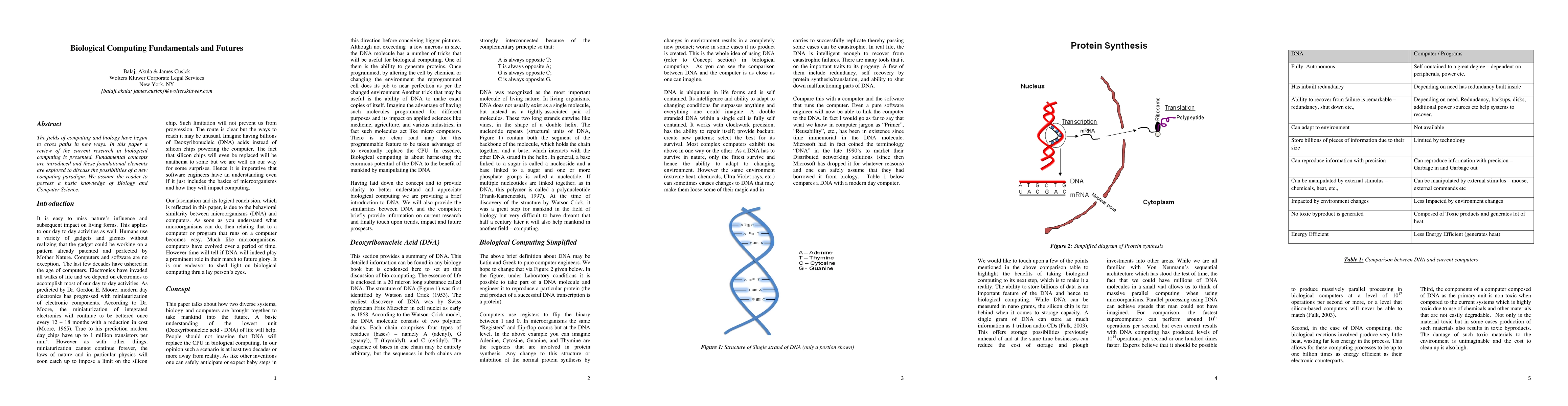 The fields of computing and biology have begun to cross paths in new ways. In this paper a review of the current research in biological computing is presented. Fundamental concepts are introduced and these foundational elements are explored to discuss the possibilities of a new computing paradigm. We assume the reader to possess a basic knowledge of Biology and Computer Science