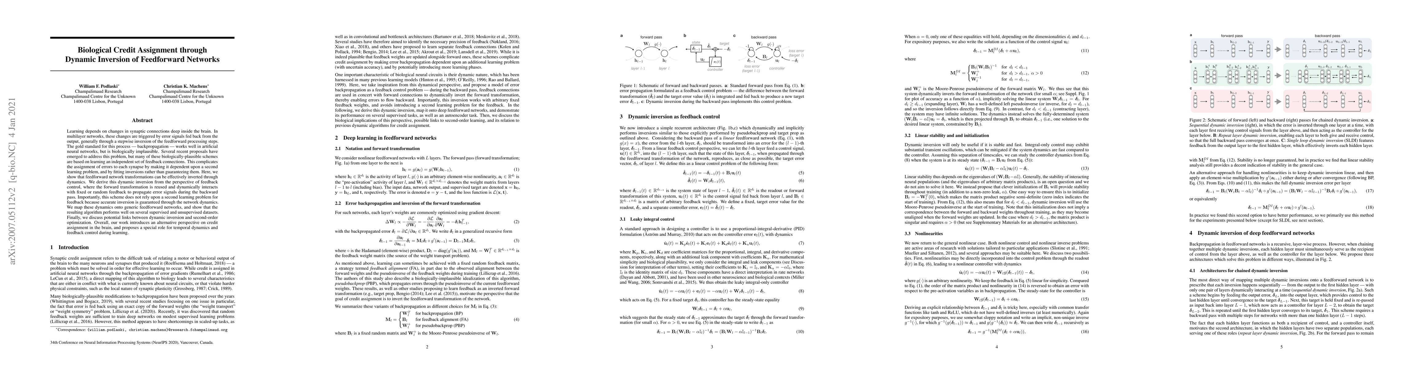 This paper proposes a biologically plausible method for dynamic inversion of feedforward networks to enable effective credit assignment without relying on a separate learning problem for feedback connections. The approach leverages network dynamics and feedback control to guarantee accurate inversion, demonstrating successful performance on various supervised and unsupervised datasets.