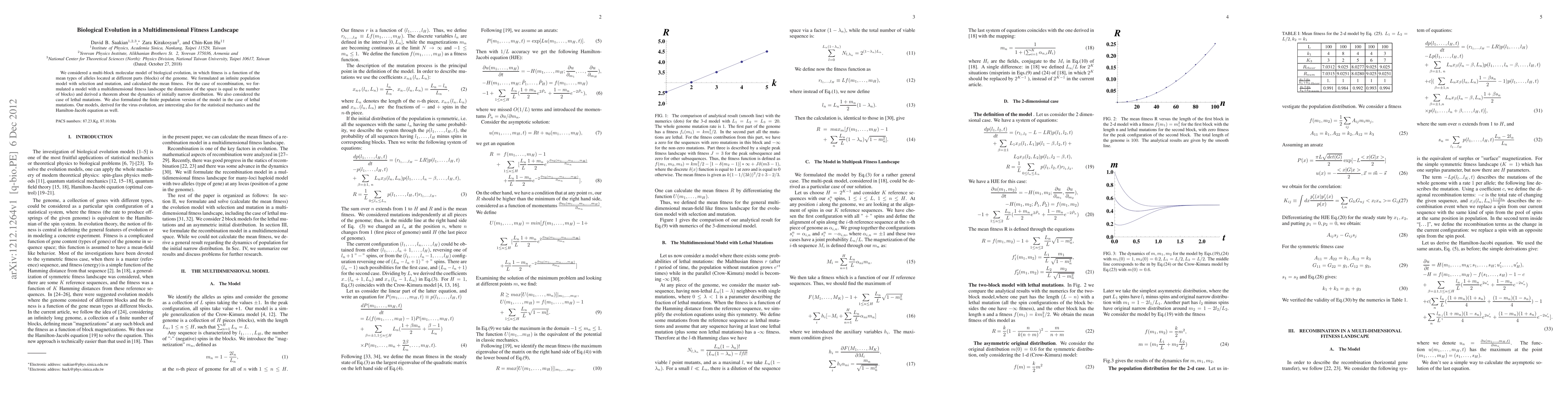 We considered a {multi-block} molecular model of biological evolution, in which fitness is a function of the mean types of alleles located at different parts (blocks) of the genome. We formulated an infinite population model with selection and mutation, and calculated the mean fitness. For the case of recombination, we formulated a model with a multidimensional fitness landscape (the dimension of the space is equal to the number of blocks) and derived a theorem about the dynamics of initially narrow distribution. We also considered the case of lethal mutations. We also formulated the finite population version of the model in the case of lethal mutations. Our models, derived for the virus evolution, are interesting also for the statistical mechanics and the Hamilton-Jacobi equation as well.