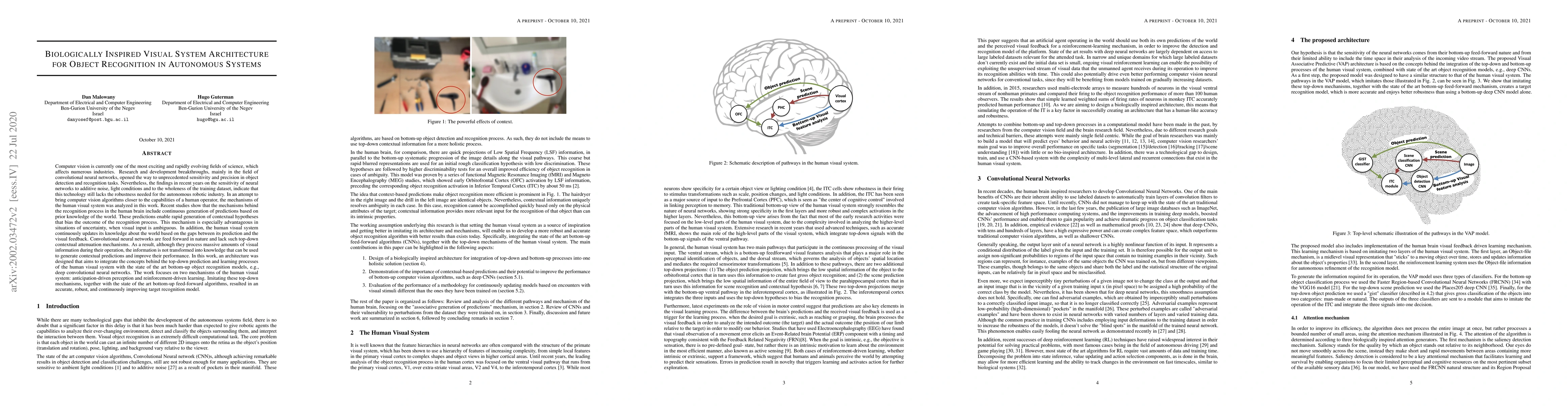 Findings in recent years on the sensitivity of convolutional neural networks to additive noise, light conditions and to the wholeness of the training dataset, indicate that this technology still lacks the robustness needed for the autonomous robotic industry. In an attempt to bring computer vision algorithms closer to the capabilities of a human operator, the mechanisms of the human visual system was analyzed in this work. Recent studies show that the mechanisms behind the recognition process in the human brain include continuous generation of predictions based on prior knowledge of the world. These predictions enable rapid generation of contextual hypotheses that bias the outcome of the recognition process. This mechanism is especially advantageous in situations of uncertainty, when visual input is ambiguous. In addition, the human visual system continuously updates its knowledge about the world based on the gaps between its prediction and the visual feedback. Convolutional neural networks are feed forward in nature and lack such top-down contextual attenuation mechanisms. As a result, although they process massive amounts of visual information during their operation, the information is not transformed into knowledge that can be used to generate contextual predictions and improve their performance. In this work, an architecture was designed that aims to integrate the concepts behind the top-down prediction and learning processes of the human visual system with the state of the art bottom-up object recognition models, e.g., deep convolutional neural networks. The work focuses on two mechanisms of the human visual system: anticipation-driven perception and reinforcement-driven learning. Imitating these top-down mechanisms, together with the state of the art bottom-up feed-forward algorithms, resulted in an accurate, robust, and continuously improving target recognition model.
