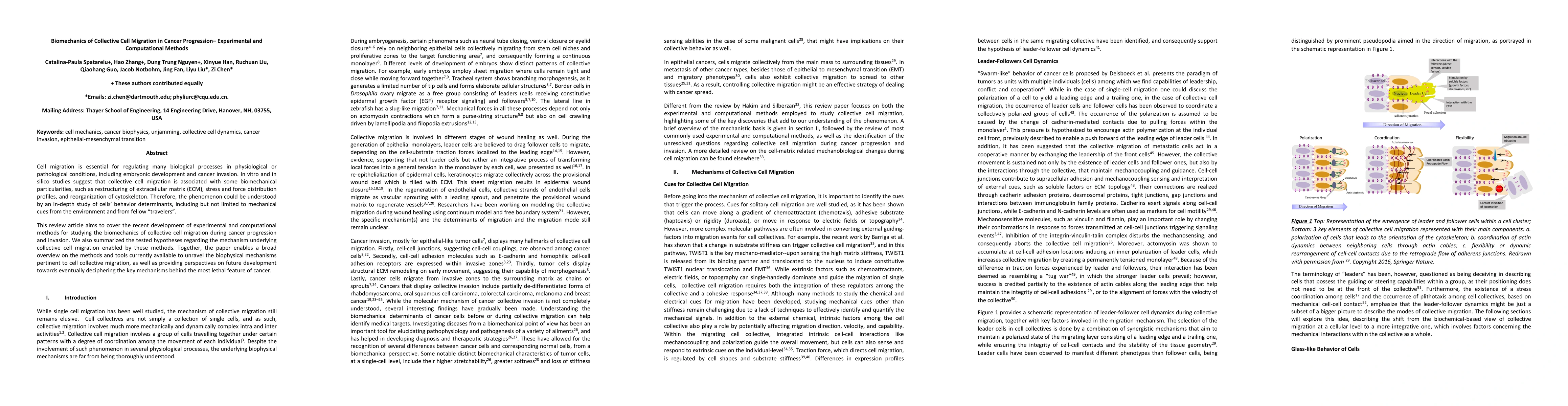 This paper reviews recent advancements in experimental and computational methods for studying the biomechanics of collective cell migration in cancer progression, focusing on the underlying mechanisms and the tools used to unravel these biophysical processes. It provides insights into the future development of these methods to better understand cancer invasion.