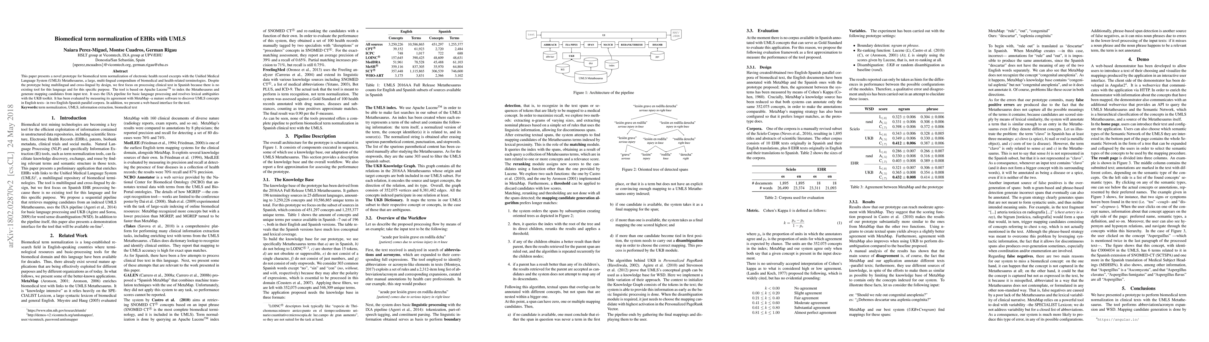 This paper introduces a prototype for normalizing biomedical terms in Spanish electronic health records using the UMLS Metathesaurus, employing Apache Lucene for indexing and resolving ambiguities with the UKB toolkit. The tool's performance is evaluated against MetaMap in English-Spanish parallel corpora, and it includes a web-based interface.