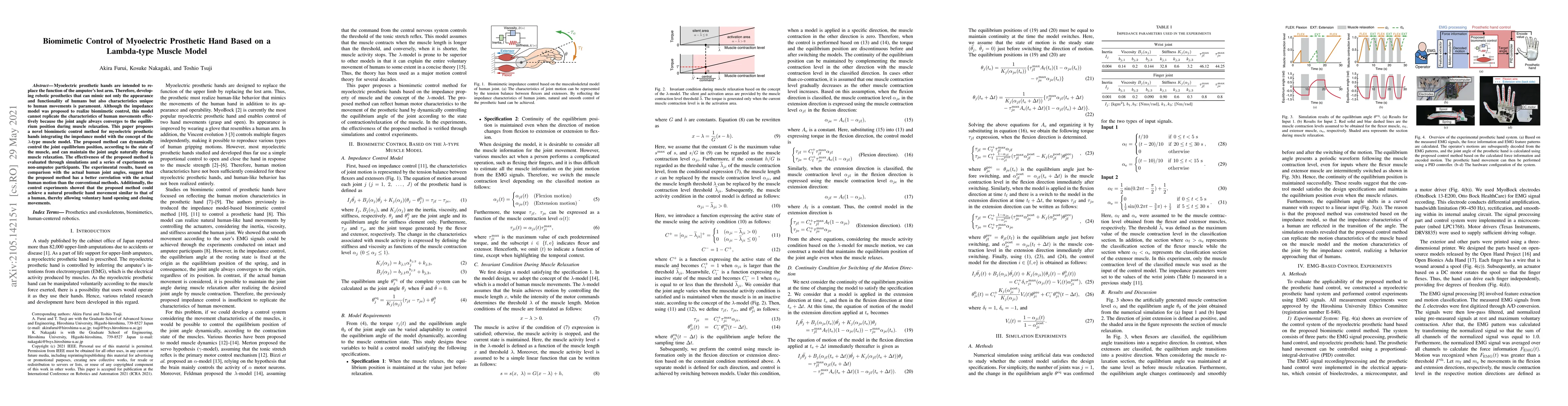 The paper introduces a novel biomimetic control method that integrates the impedance model with the $\lambda$-type muscle model for more accurate and natural prosthetic hand control.