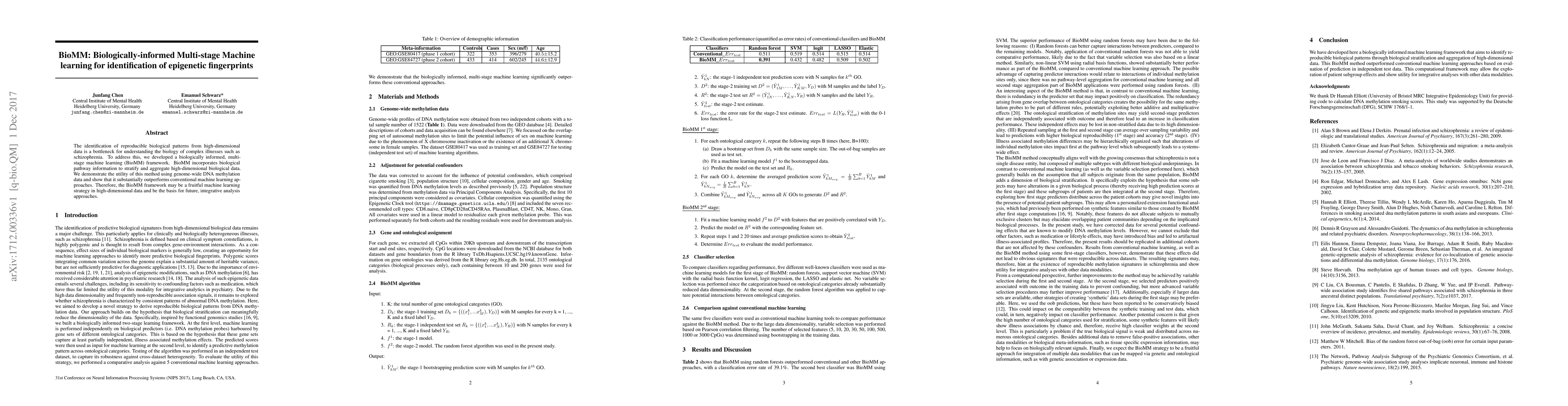 BioMM is a biologically-informed multi-stage machine learning framework designed to identify epigenetic fingerprints in high-dimensional data. It outperforms conventional methods by incorporating biological pathway information, demonstrating potential for complex illness research like schizophrenia.
