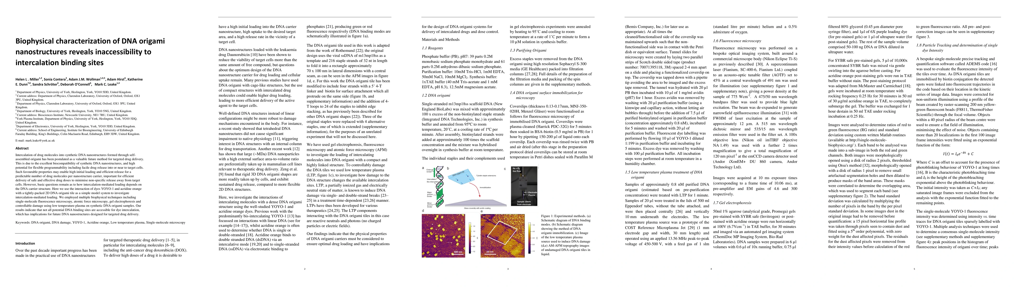 This study investigates the accessibility of intercalation binding sites in DNA origami nanostructures using biophysical techniques, finding that not all potential sites are accessible for dye intercalation. This has implications for the design of DNA nanostructures intended for targeted drug delivery.