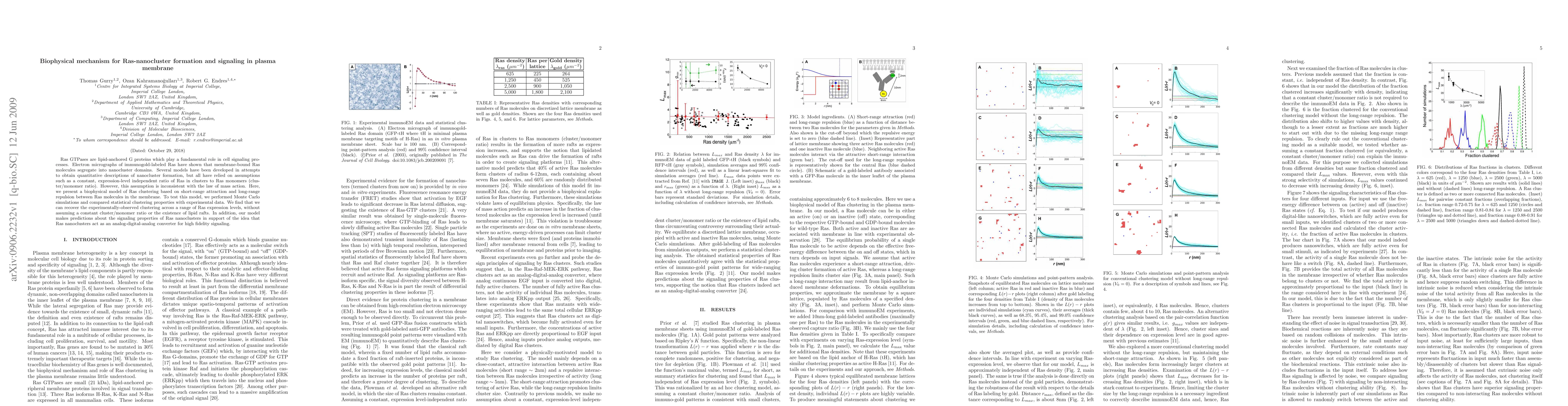 This paper proposes a biophysical model explaining Ras GTPase nanocluster formation in plasma membranes based on short-range attraction and long-range repulsion, validated by Monte Carlo simulations. The model accurately describes observed clustering without assuming a constant cluster/monomer ratio, and predicts Ras nanoclusters function as an analog-digital-analog converter for high fidelity signaling.