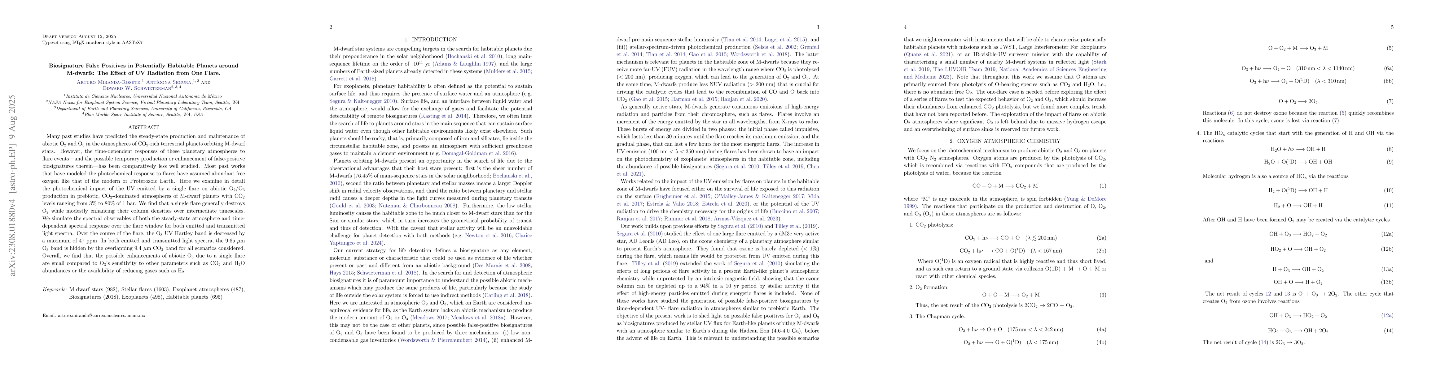 Many past studies have predicted the steady-state production and maintenance of abiotic O$_2$ and O$_3$ in the atmospheres of CO$_2$-rich terrestrial planets orbiting M dwarf stars. However, the time-dependent responses of these planetary atmospheres to flare events - and the possible temporary production or enhancement of false positive biosignatures therein - has been comparatively less well studied. Most past works that have modeled the photochemical response to flares have assumed abundant free oxygen like that of the modern or Proterozoic Earth. Here we examine in detail the photochemical impact of the UV emitted by a single flare on abiotic O$_2$/O$_3$ production in prebiotic, CO$_2$-dominated atmospheres of M dwarf planets with CO$_2$ levels ranging from 10% to 90% of 1 bar. We find that a single flare generally destroys O$_2$ while modestly enhancing O$_3$ column densities. We simulate the spectral observables of both the steady-state atmosphere and time-dependent spectral response over the flare window for both emitted and transmitted light spectra. Over the course of the flare, the O$_3$ UV Hartley band is modestly enhanced by a maximum of 6 ppm while the CO$_2$ molecular transit depths modestly decline by 7 ppm. In both emitted and transmitted light spectra, the 9.65 $\mu$m O$_3$ band is hidden by the overlapping 9.4 $\mu$m CO$_2$ band for all scenarios considered. Overall, we find that the possible enhancements of abiotic O$_3$ due to a single flare are small compared to O$_3$'s sensitivity to other parameters such as CO$_2$ and H$_2$O abundances or the availability of reducing gases such as H$_2$.