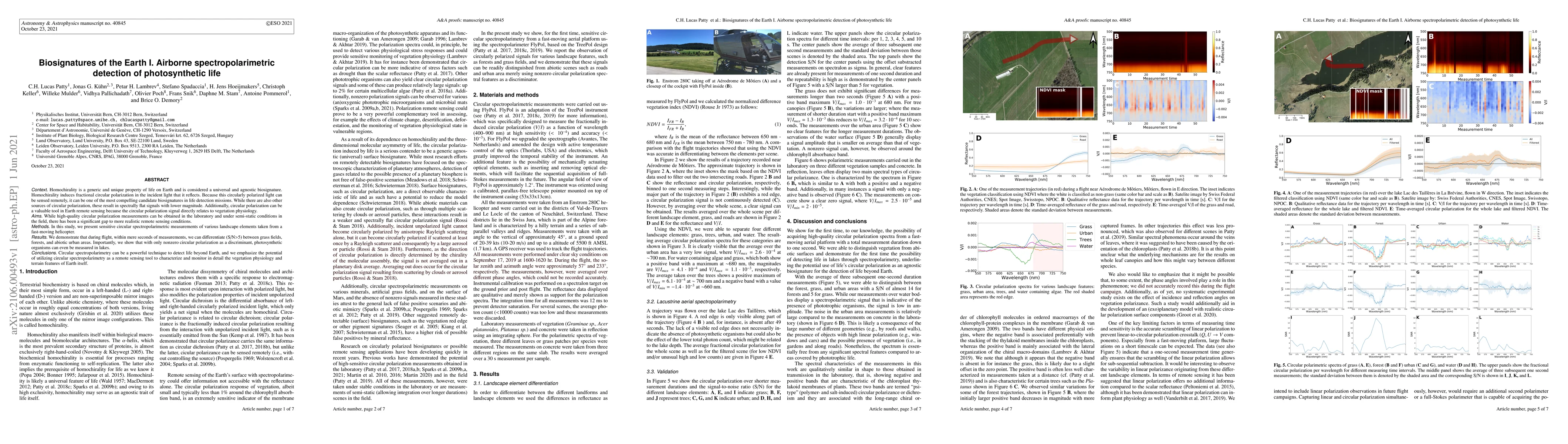 This paper explores the use of airborne spectropolarimetric detection to identify photosynthetic life through the unique property of homochirality, which induces fractional circular polarization in reflected light. The study demonstrates the capability to differentiate between various landscape elements using circular polarization measurements from a helicopter, highlighting the potential for this technique in both extraterrestrial life detection and Earth remote sensing.