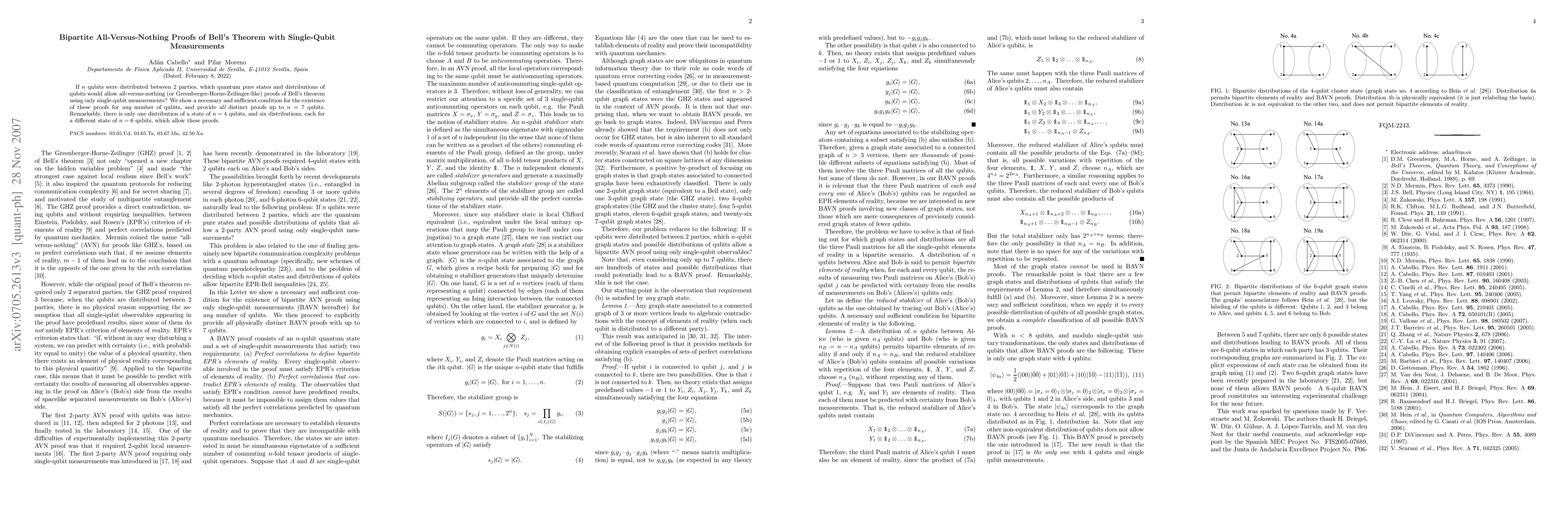 Researchers discovered conditions for single-qubit measurements to prove Bell's theorem in bipartite systems, finding unique distributions for up to 7 qubits that allow such proofs.