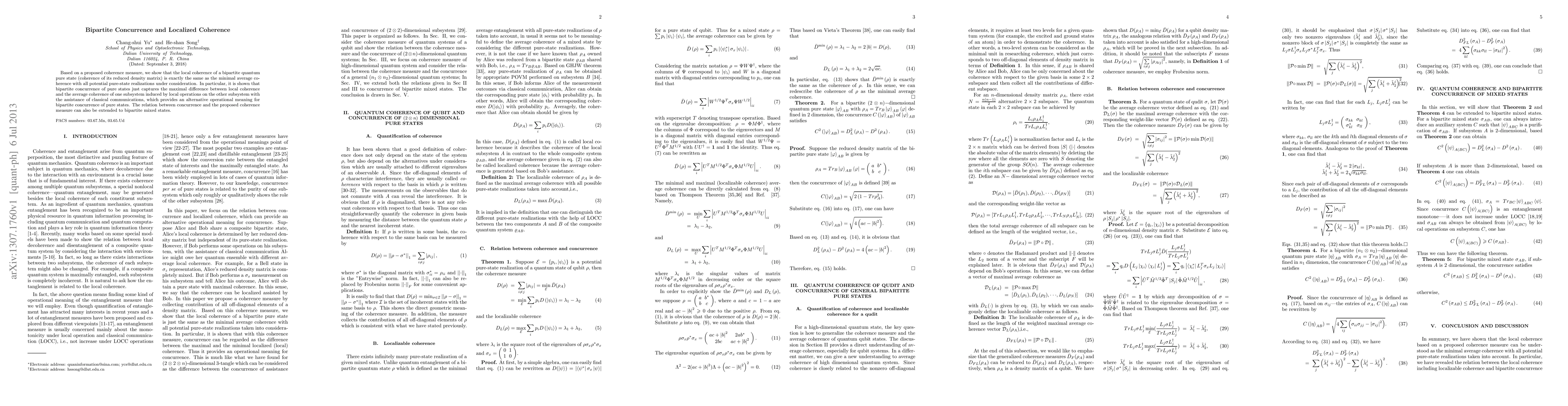Based on a proposed coherence measure, we show that the local coherence of a bipartite quantum pure state (coherence of its reduced density matrix) is exactly the same as the minimal average co- herence with all potential pure-state realizations under consideration. In particular, it is shown that bipartite concurrence of pure states just captures the maximal difference between local coherence and the average coherence of one subsystem induced by local operations on the other subsystem with the assistance of classical communications, which provides an alternative operational meaning for bipartite concurrence of pure states. The relation between concurrence and the proposed coherence measure can also be extended to bipartite mixed states.