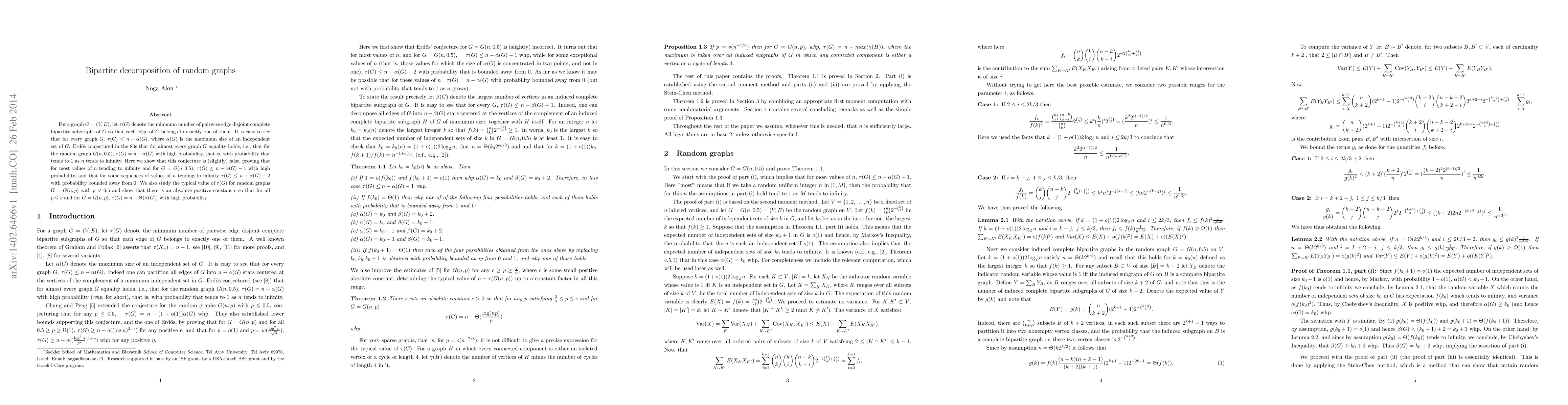 For a graph $G=(V,E)$, let $\tau(G)$ denote the minimum number of pairwise edge disjoint complete bipartite subgraphs of $G$ so that each edge of $G$ belongs to exactly one of them. It is easy to see that for every graph $G$, $\tau(G) \leq n -\alpha(G)$, where $\alpha(G)$ is the maximum size of an independent set of $G$. Erd\H{o}s conjectured in the 80s that for almost every graph $G$ equality holds, i.e., that for the random graph $G(n,0.5)$, $\tau(G)=n-\alpha(G)$ with high probability, that is, with probability that tends to $1$ as $n$ tends to infinity. Here we show that this conjecture is (slightly) false, proving that for most values of $n$ tending to infinity and for $G=G(n,0.5)$, $\tau(G) \leq n-\alpha(G)-1$ with high probability, and that for some sequences of values of $n$ tending to infinity $\tau(G) \leq n-\alpha(G)-2$ with probability bounded away from $0$. We also study the typical value of $\tau(G)$ for random graphs $G=G(n,p)$ with $p < 0.5$ and show that there is an absolute positive constant $c$ so that for all $p \leq c$ and for $G=G(n,p)$, $\tau(G)=n-\Theta(\alpha(G))$ with high probability.