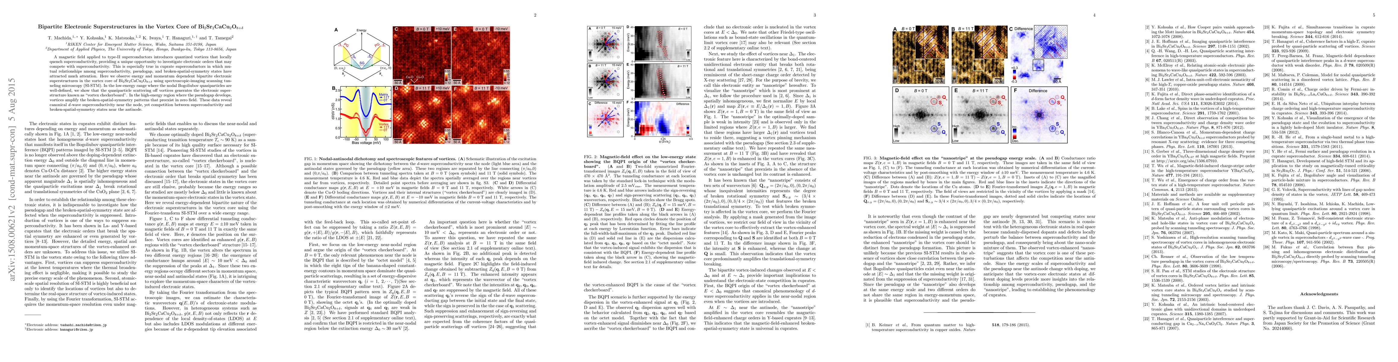 Researchers observed energy- and momentum-dependent bipartite electronic superstructures in the vortex core of a type-II superconductor, revealing competition between superconductivity and broken-spatial-symmetry states.